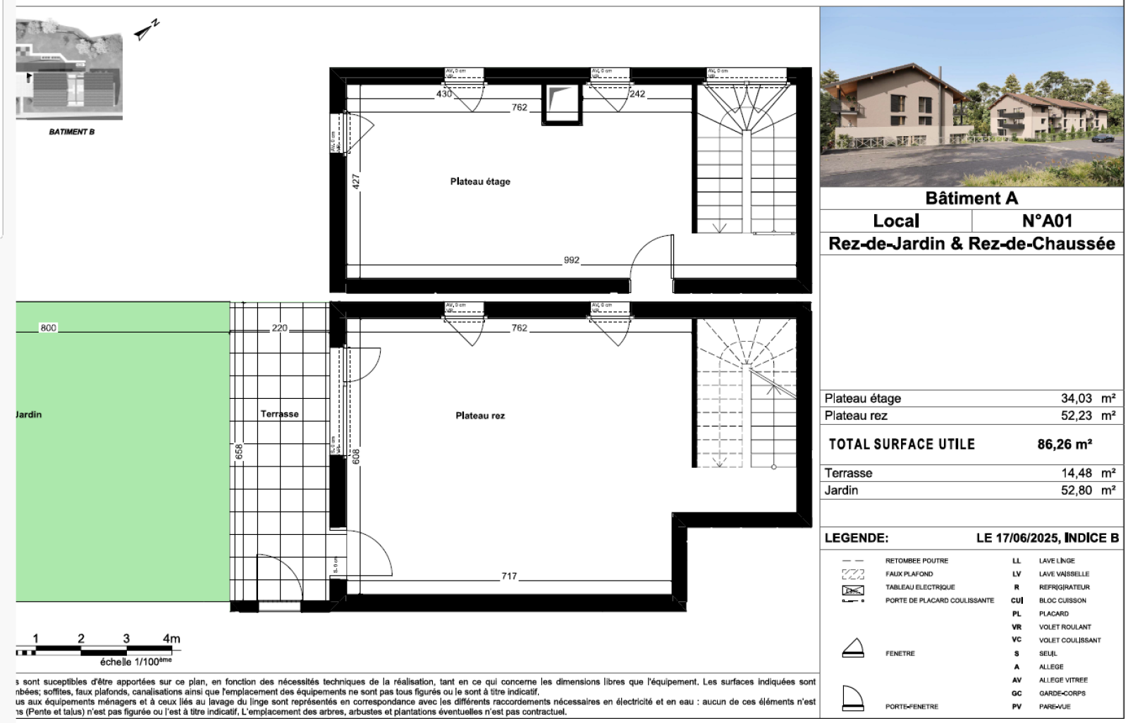 52 m² en rez-de-jardin34 m² à l’étage