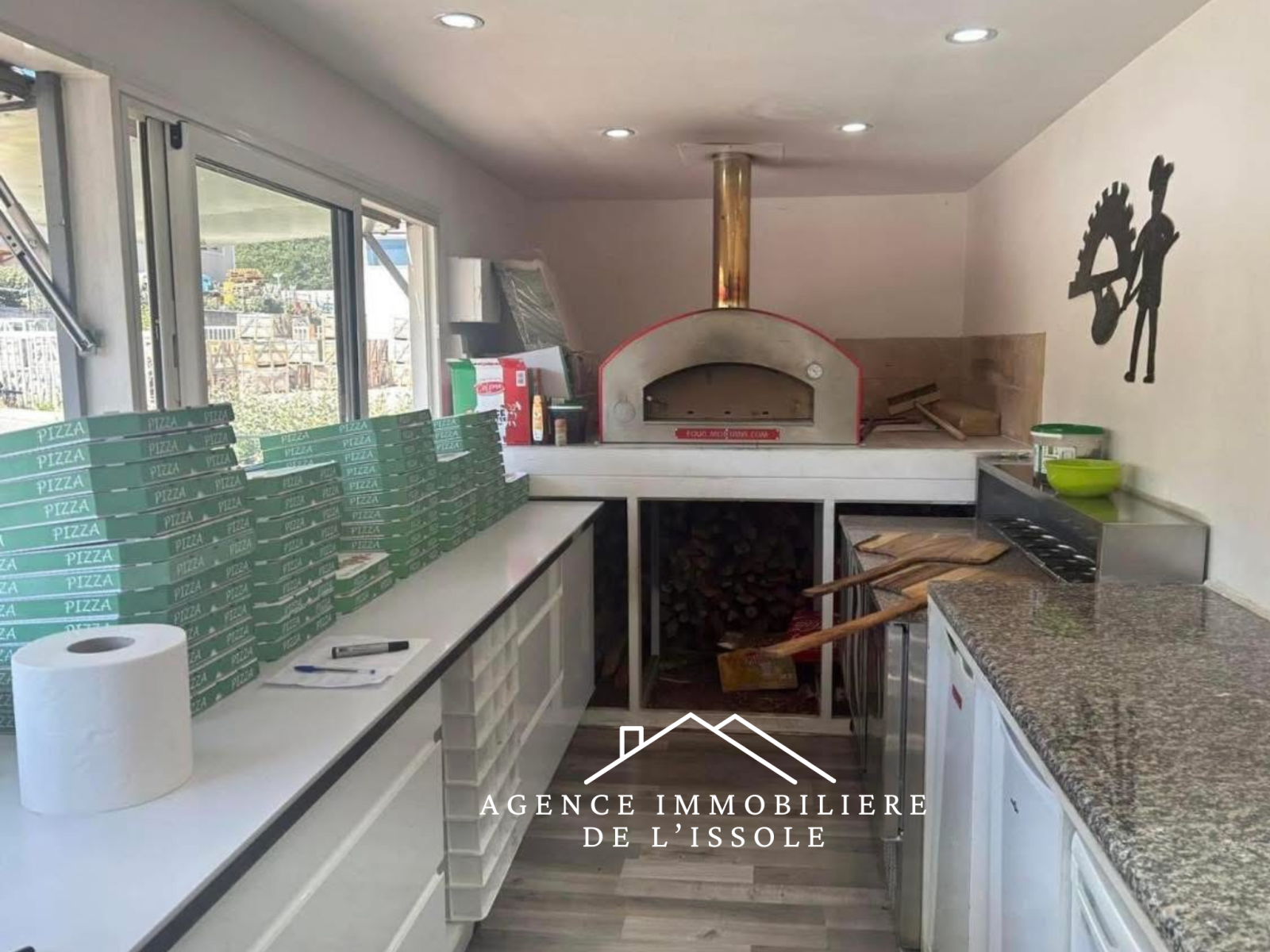 L’activité s’exerce dans un conteneur maritime aménagé en local à pizza avec climatisation et terrasse en bois sur l'avant. Cela vous permet de délocaliser l’activité si vous le souhaitez.