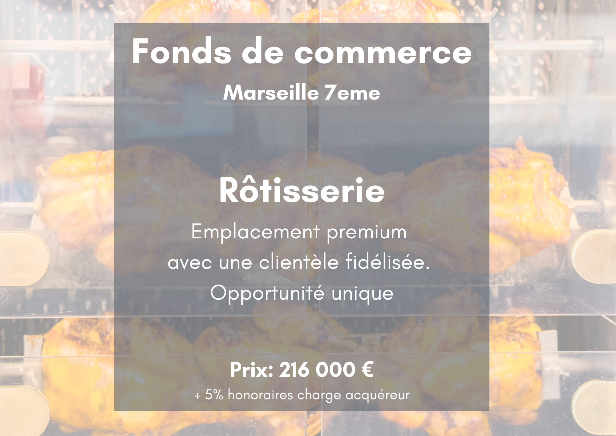 EXCLUSIVITÉ À VENDRE – Fonds de commerce - Rôtisserie – Marseille 13007– Emplacement premium