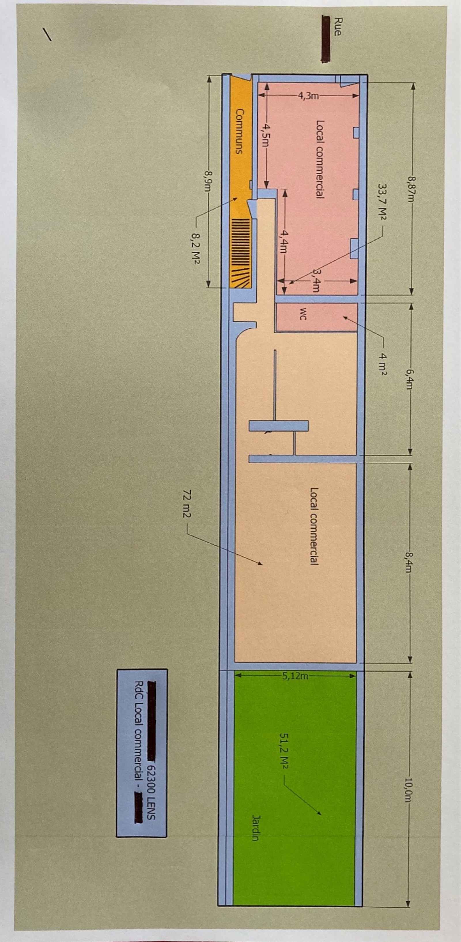 - Local de 72 m2 sur l'arrière du bâtiment :