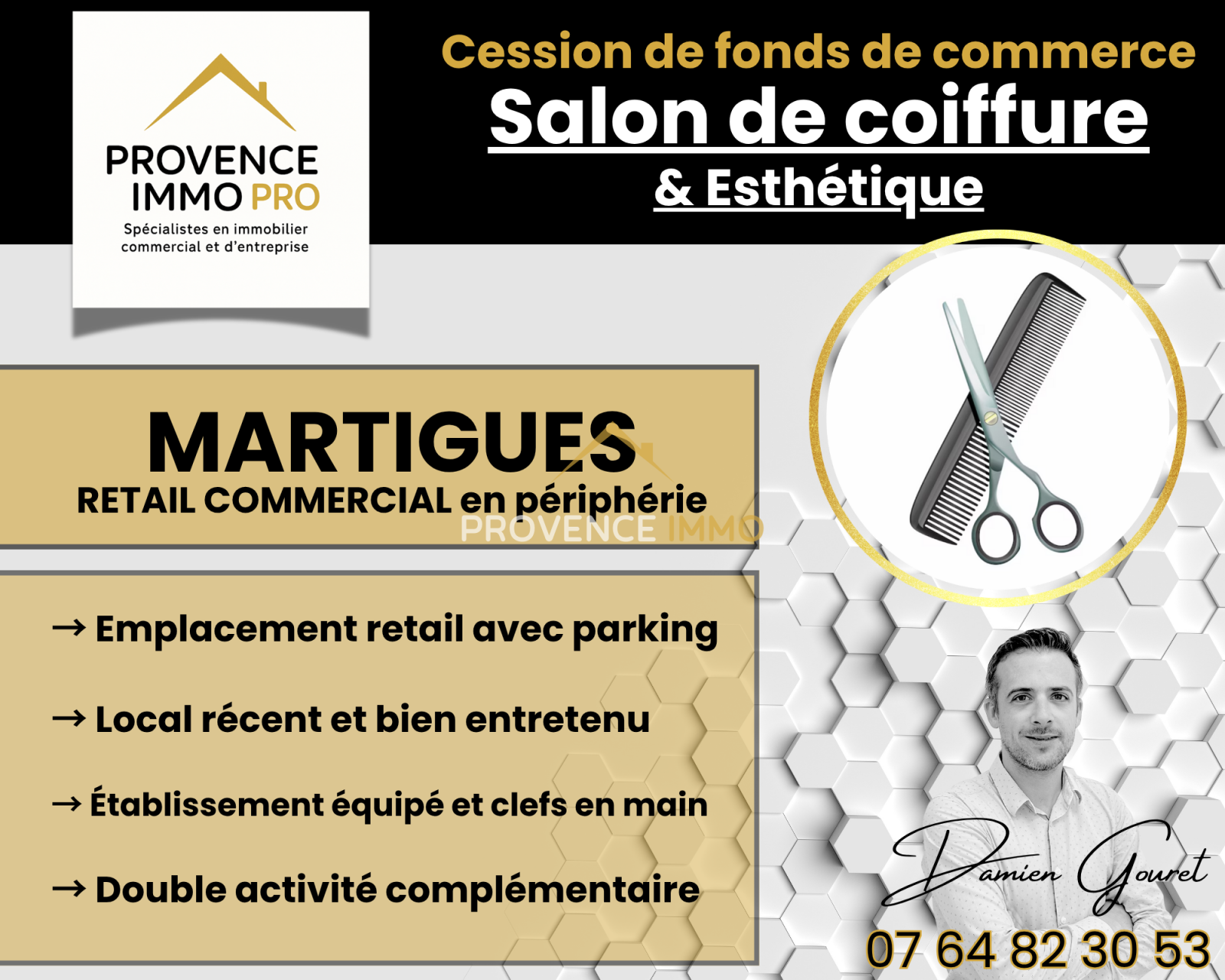 Damien Gouret vous propose, à Martigues, la cession du fonds de commerce d’un salon de coiffure mixte et esthétique idéalement situé en environnement retail avec parking partagé.