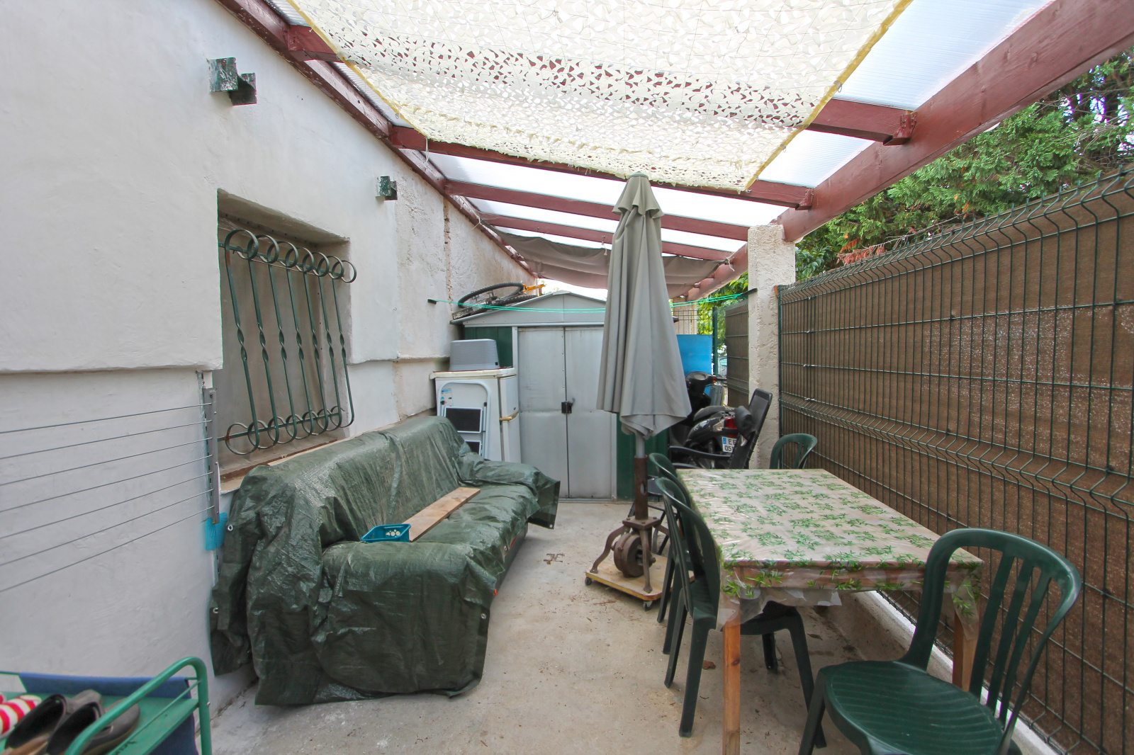 Le bien dispose : de deux places de stationnement dont une couverte, d'une terrasse couverte/clôturée de 18 m² accès avec portillon.