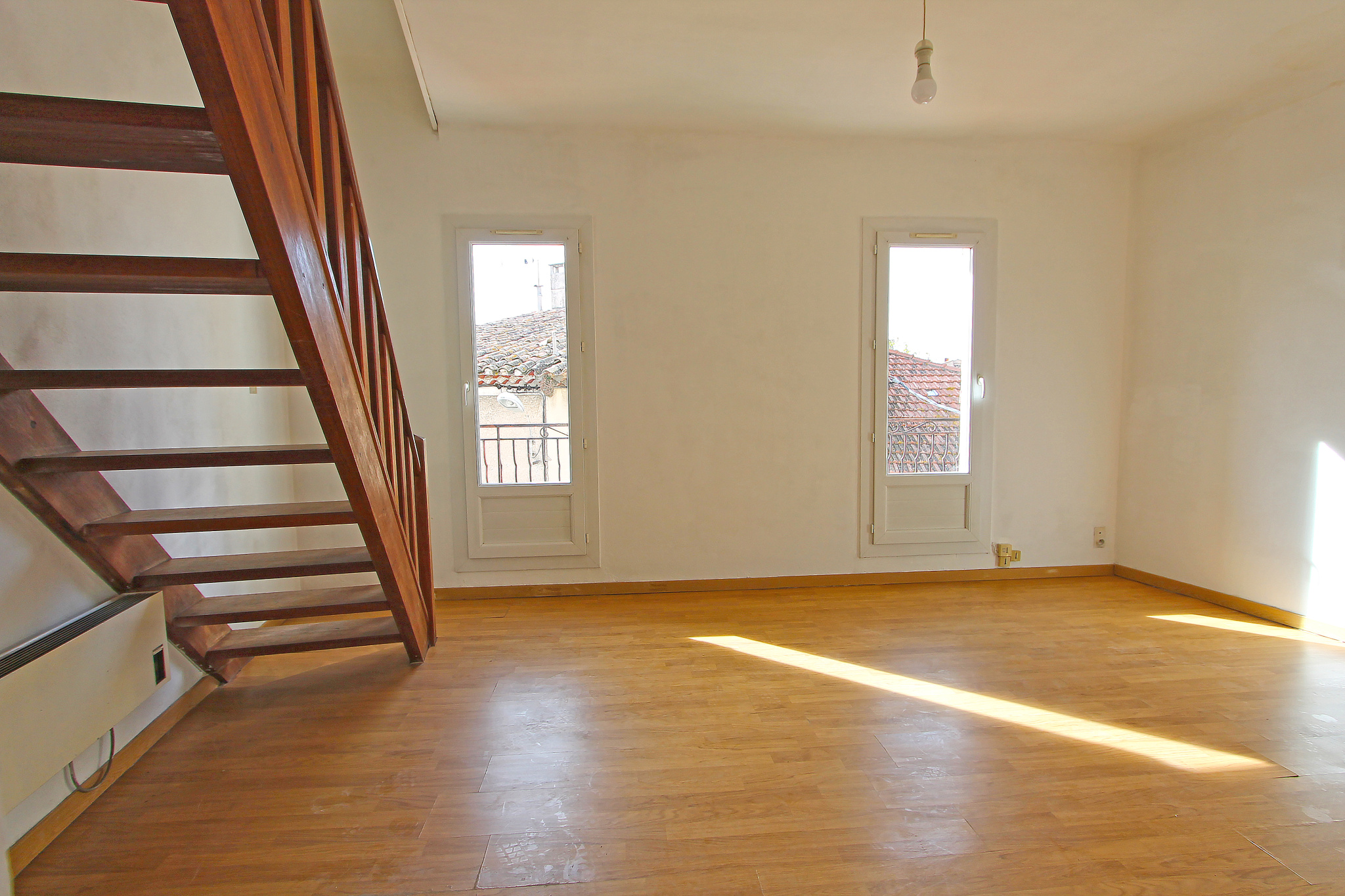 Eguilles, au coeur du village dans une petite copropriété, appartement traversant de type 3 de 59m2 (52m2 en loi carrez) avec balcon situé au 2ème et dernier étage sans ascenseur. Il se compose, d'un hall d'entrée, d'un séjour lumineux de 17m2 donnant sur un joli balcon d'environ 6m2, d'une cuisine séparée semi-équipée de 8m2, d'une salle de bains avec wc de 4m2, une chambre de 10m2 et une mezzanine de 14m2. Double vitrage PVC Exposition : Est/Ouest Charges de copropriété : 93 euros/mois Taxe foncière : 530 euros Parking à proximité Contactez MONTALBANO Laurence au 06.19.58.52.69, mandataire indépendant RSAC 825 393 879 Aix-en-Provence pour visiter ce bien.