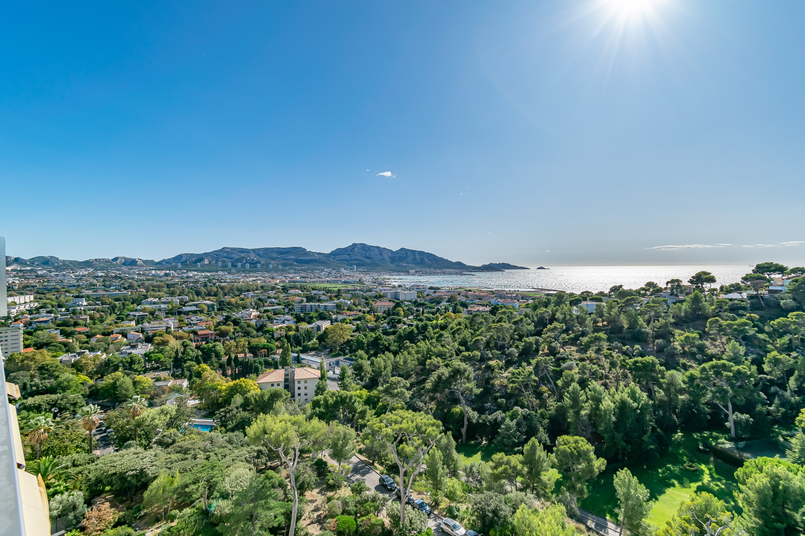 Trés belle vue mer . Dans une résidence fermée , sécurisée , Les jardins de thalassa , vous serez charmé par ce type 3 de 90 M2 en étage élevé avec une magnifique vue mer de la pointe rouge au frioul!!!! .Cet appartement entiérement renové avec des materiaux de qualité beneficie d'un bel espace de vie avec sa cuisine équipée ouverte sur le salon donnant sur une belle terrasse , l'espace nuit se compose de 2 chambres également avec terrasse, dont une avec salle d'eau et toilette indépendant . Une cave vient completer ce bien .Réel coup de coeur !!!!!! .La residence est fermée et sécurisée 24/24 par un service de surveillance , Piscine, tennis et restaurant .