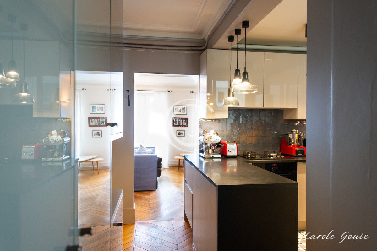 A 2 pas de la place du Maréchal Juin, voici un appartement de 3 pièces, au plan compact et bien équilibré. Dans un immeuble Haussmannien complètement rénové (toiture, ravalement de la façade et des 2 courettes, caves, hall d'entrée et cage d'escalier), cet appartement de 62m2 Carrez se situe au 4ème étage avec ascenseur. Il s’ouvre vers l’extérieur par 8 fenêtres dont 2 fenêtres dans le salon de 18m2. Le charme de l’ancien (immeuble pierre de taille, parquet point de Hongrie, cheminée et hauteur sous plafond) se marie avec la rénovation complète de l’appartement par un architecte en 2014. Cuisine équipée et semi-ouverte Nolte. Fenêtres neuves en bois et en double vitrage. Le plan est optimisé par une partie nuit au calme donnant sur une large cour agréable et exposée Sud Est et un séjour sur rue exposé Sud Ouest. Chauffage et eau chaude, individuels au gaz. Une cave saine complète ce 3 pièces. Grand local vélos et poussettes au RDC.