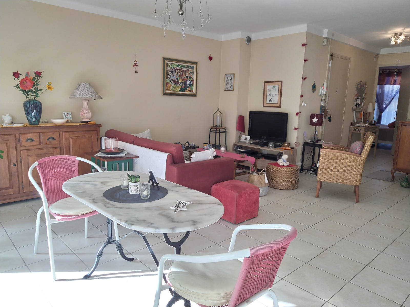 une salle d'eau, WC separé, clim, double vitrage, cave en sous sol.