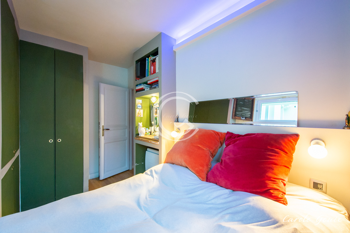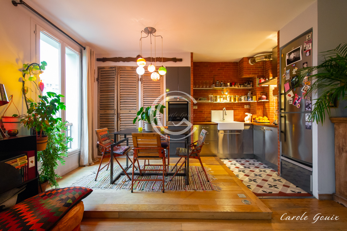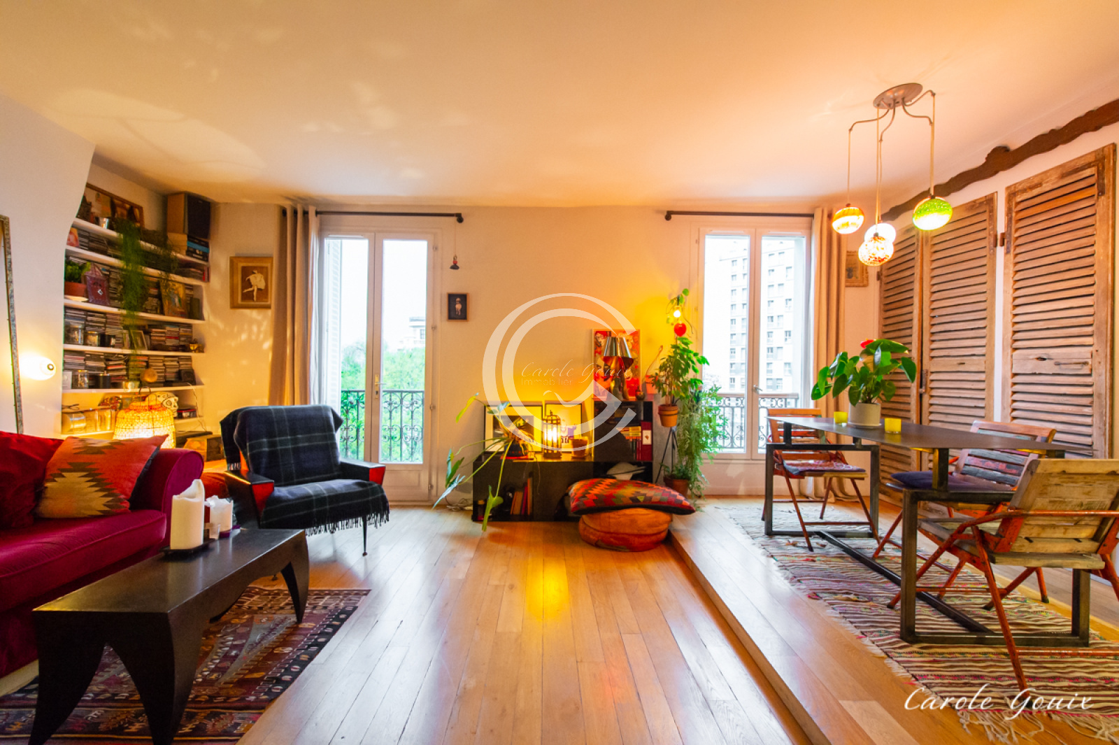 Un spacieux 2/3 pièces doté d’une grande pièce de vie donnant sur un balcon, exposé Sud-Ouest et à la vue dégagée ! A proximité de Gambetta, au 5ème étage sans ascenseur, d’un immeuble du début du XXème siècle dont la toiture a été rénovée il y a 7 ans. Ce 43,40 m² Carrez entièrement rénové il y a 8 ans offre un double séjour avec une cuisine ouverte aménagée de près de 30m2. La vue surplombe un square arboré et le soleil se couche sur l’église de Ménilmontant. La triple exposition de ce nid le rend très lumineux, le calme est également au rendez vous. La chambre offre des aménagements sur mesure incluant un bureau, la salle de bain / wc est rénovée avec goût. 2 portes fenêtres en bois double vitrage, 2 fenêtres bois double vitrage et 1 petite en PVC. Porte blindée, chauffage et eau chaude individuels électriques.
