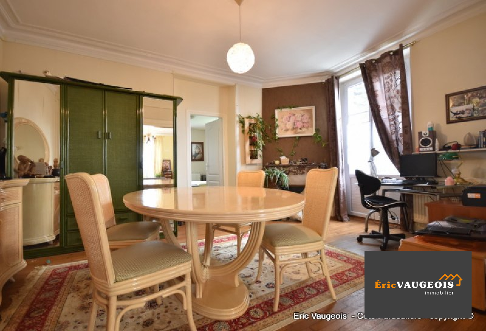 EXCLUSIVITÉ de l'agence Eric VAUGEOIS immobilier à Coulommiers au milieu de la rue piètonne. Éric VAUGEOIS vous propose à deux pas du centre ville de Coulommiers un bel appartement F5 de 109 m² environ au premier étage d'une grande maison bourgeoise de deux étages, il comprend : Entrée - Double séjour lumineux orienté sud/ouest donnant sur un grand balcon - Cuisine ouverte aménagée et équipée - 3 chambres - Dressing - Salle de bains avec WC - Salle d'eau avec WC. En sous sol : Grande cave. Chauffage et production d'eau chaude par chaudière gaz de ville indépendante. Place de parking. Fenêtres double vitrages PVC. Pas de charges de co-pro avec syndic bénévole (pas de travaux d'immeuble à faire) Taxe foncière de 913 E/an.Toutes commodités sur place avec commerces, écoles, collège, lycée. Gare à pied en moins de 10 minutes. A visiter sans tarder !