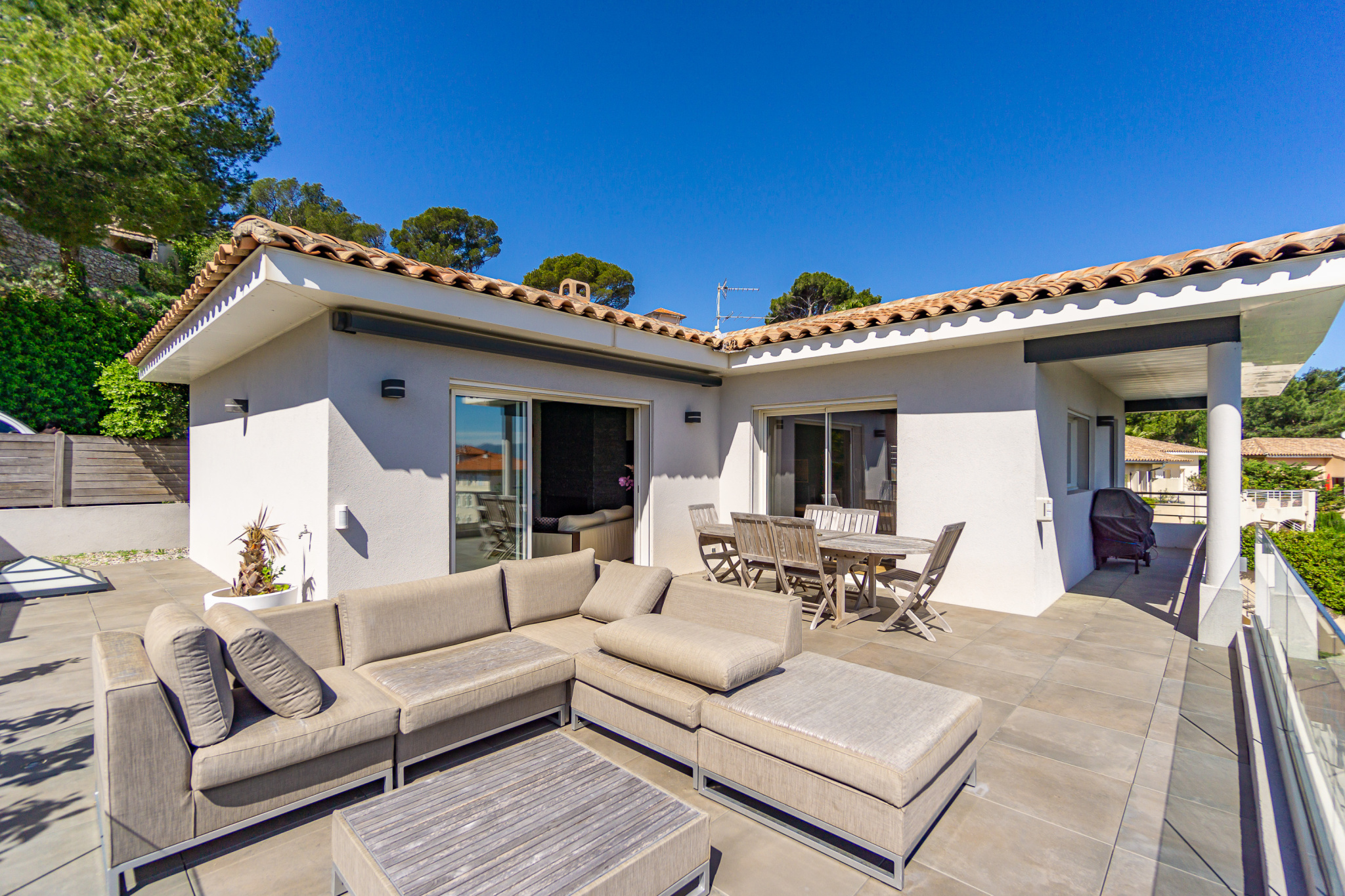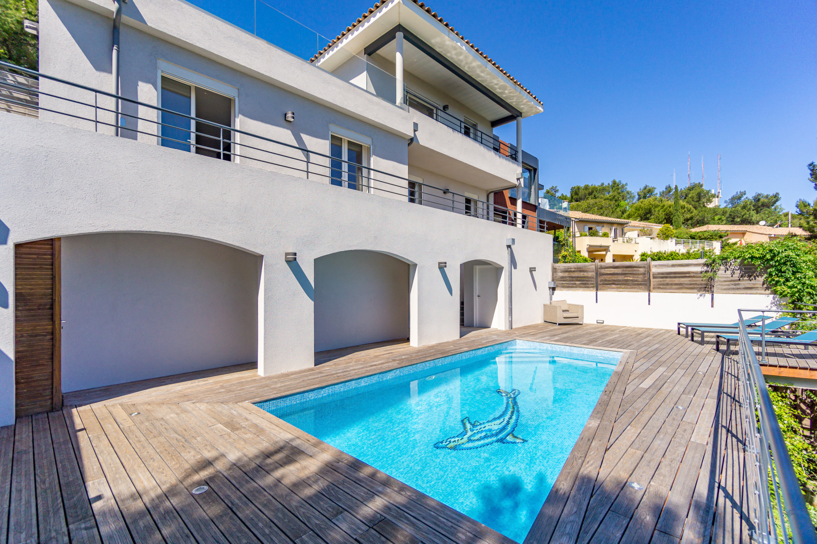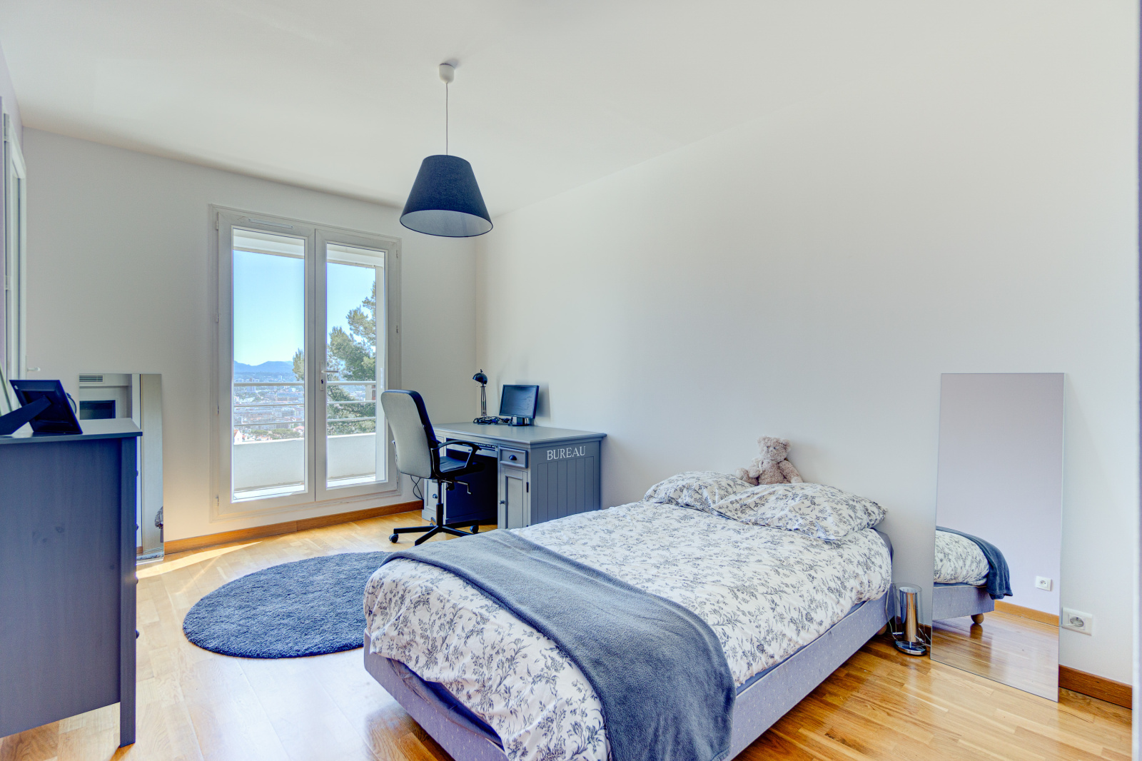 Sur les hauts de Perier, en position dominante, cette maison lumineuse de type 5 de 206 m2 et 60 m2 de dépendance entièrement revisitée en 2018 offre une vue panoramique sur la ville et Notre- Dame de la Garde. Cette maison bénéficie d'un bel espace de vie avec cheminée , une cuisine équipée ouverte sur la salle à manger , le tout donnant sur une très belle terrasse de plus de 60 m2 avec des gardes corps en verre afin de profiter pleinement de cette vue panoramique. En R_1 se trouve l'espace nuit dont 3 chambres avec une salle de bains et une salle d'eau , des rangements dans toutes les chambres ainsi qu'une suite parentale offrant de très beaux volumes avec sa salle de bains et son dressing. Une buanderie. En R_2 une belle piscine avec sa plage en teck , vous aurez la possibilité d'aménager les 60 m2 qui bordent la piscine en pool house , studio ou dépendance salle de sport . Un garage ainsi que 2 places de parkings viennent compléter ce bien. Chauffage et climatisation avec pompe à chaleur. Aucun travaux à prévoir. Au Calme. Pas de vis à vis. Expo sud/est.