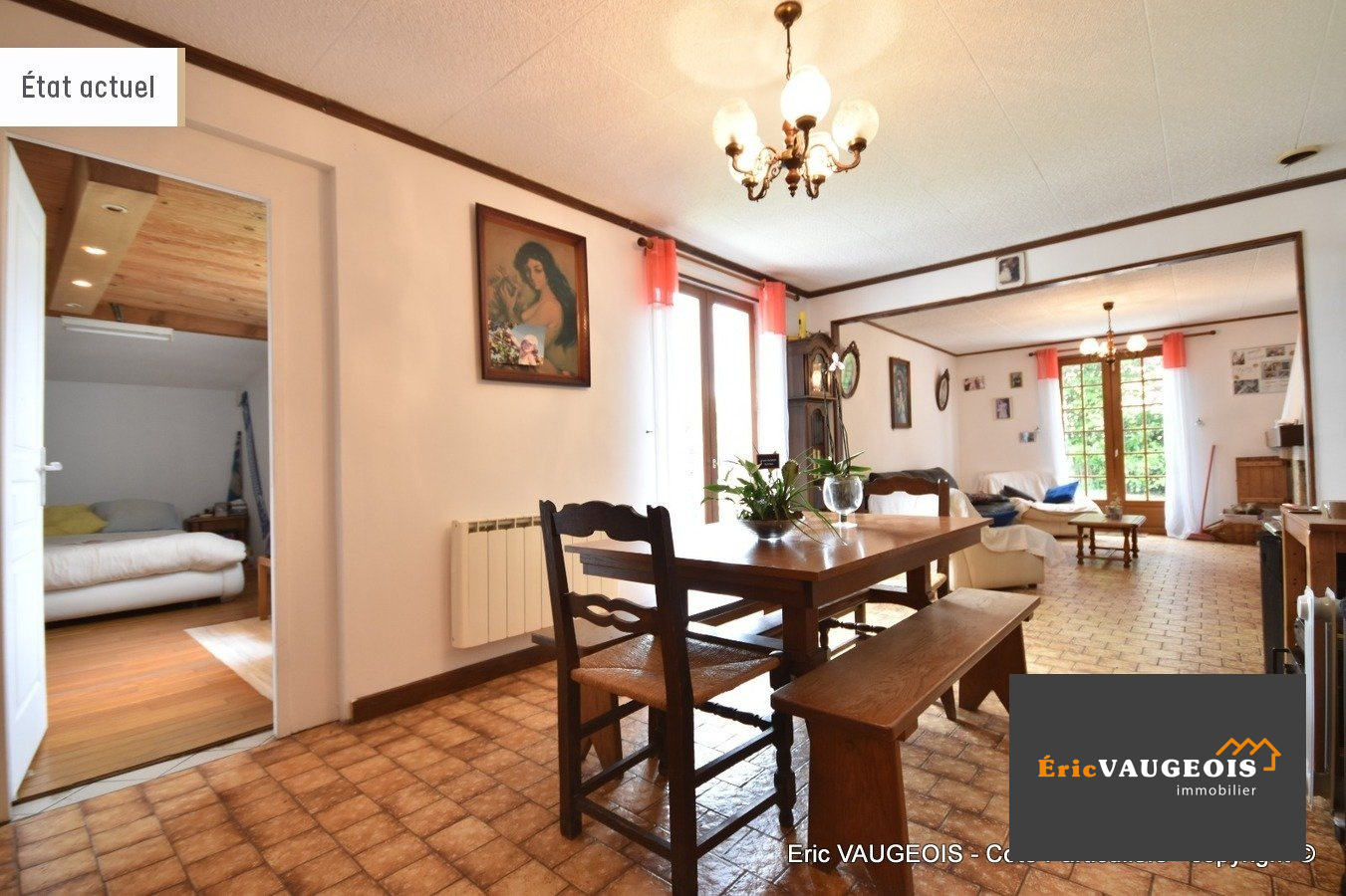 EXCLUSIVITÉ de l'agence Eric VAUGEOIS immobilier à Coulommiers au milieu de la rue piètonne. Eric VAUGEOIS vous propose cette maison plain-pied T6 de 120 m² environ de 1978 située dans le charmant village de Chevru (77320) à une dizaine de minutes de Coulommiers. Elle se compose : Entrée - Double séjour lumineux de 38 m² environ avec cheminée et son insert - Cuisine aménagée et équipée - 4 chambres - Salle de bains - WC séparé. Chauffage électrique type éco et ballon d'eau chaude (récent) électrique. Double vitrage PVC. Assainissement tout-à -l'égout conforme. Internet très haut débit par fibre. Ecoles primaires avec cantine et garderie à 5 min à pied, coiffeur, pizzeria, kiné sur place. Arrêt de bus à 3 min à pied pour collège (Ferté Gaucher) et lycée (Coulommiers). Deux garages + un abris. Portail motorisé.Terrain de 750 m² environ, clos, plat, Arboré, au calme et sans vis-à -vis. Taxe foncière de 890 E/an A visiter sans tarder ! Demandez à faire la visite virtuelle 3D depuis chez vous en toute tranquillité, je vous enverrai le lien ou directement sur notre site agence.