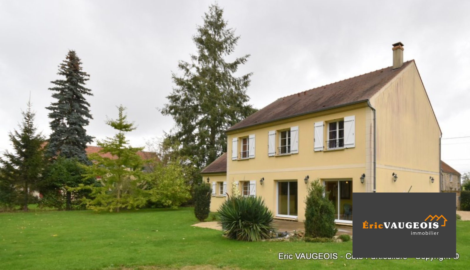 L'agence Eric VAUGEOIS immobilier à Coulommiers au milieu de la rue piètonne. Eric VAUGEOIS vous propose à moins de 10 min de Coulommiers cette superbe maison individuelle T7 de 2006 de 187 m² environ comprenant au RDC : Hall d'entrée avec placard - Séjour lumineux de plus de 45 m² avec poële à bois - Cuisine aménagée et équipée ouverte - Cellier avec buanderie et grenier - Grande Chambre - Salle d'eau - WC suspendu avec lave mains. A l'étage : Grand palier - 4 Belles Chambres - Grande Salle de bains avec baignoire d'angle + douche et meuble vasque - WC suspendu. Terrain de plus de 1500 m² clos, plat, sans vis-à -vis, au calme et arboré. Puits avec pompe. Grande Terrasse. Portail motorisée. Garage double de 45 m² environ avec ses deux portes motorisées et comble aménageable. Chauffage électrique au sol au RDC et convecteurs électrique éco à l'étage. Ballon électrique 300L. Fenêtres double vitrage. Internet haut débit 4G jusqu'à 100 MBit/s. Taxe foncière de 1240 E/an. A vister sans tarder !