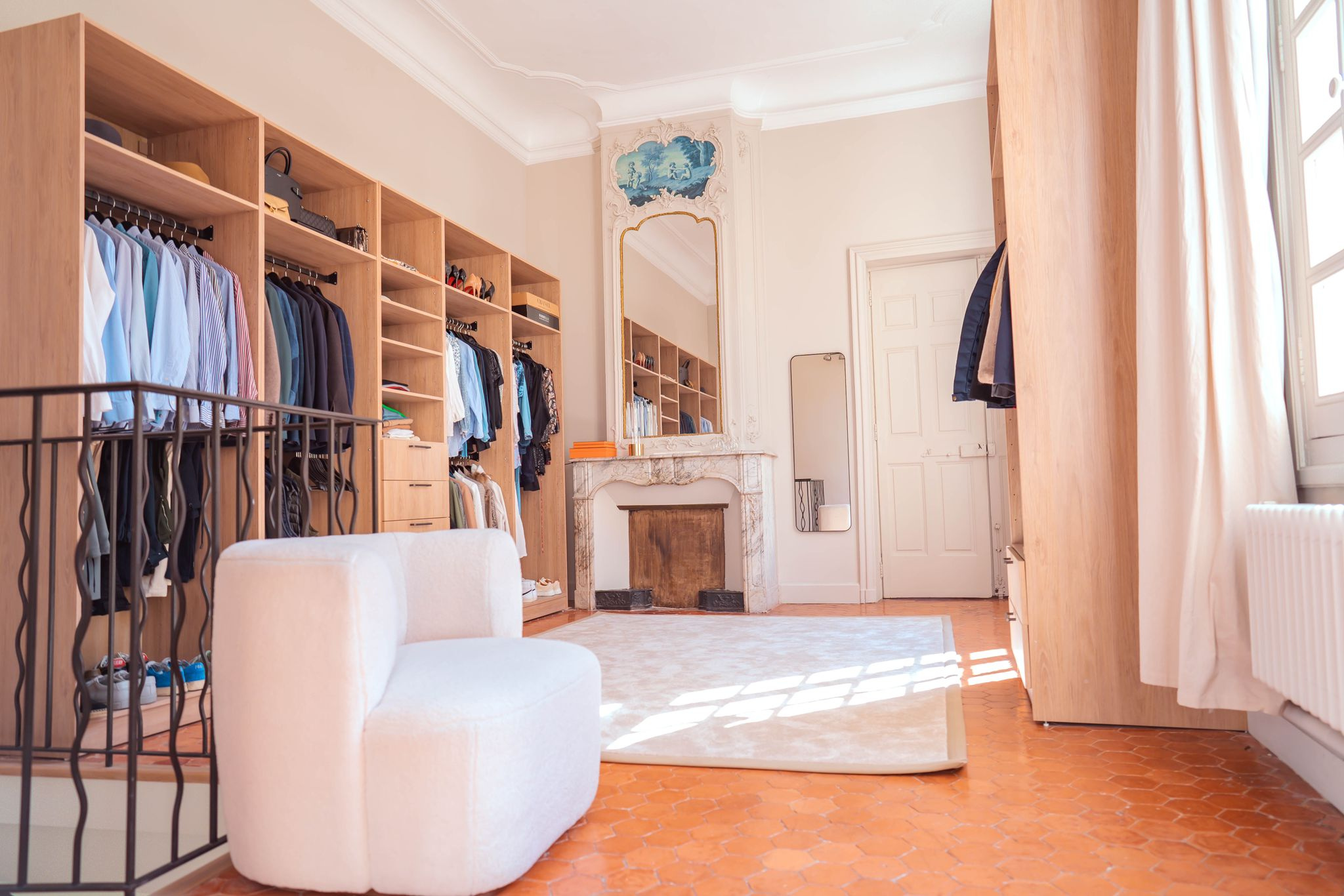 A l'étage la suite parentale se compose d'une grande chambre, d'un dressing, d'une salle de bain, d'un espace bureau et d'un joli balcon offrant un point de vue charmant sur les lieux.