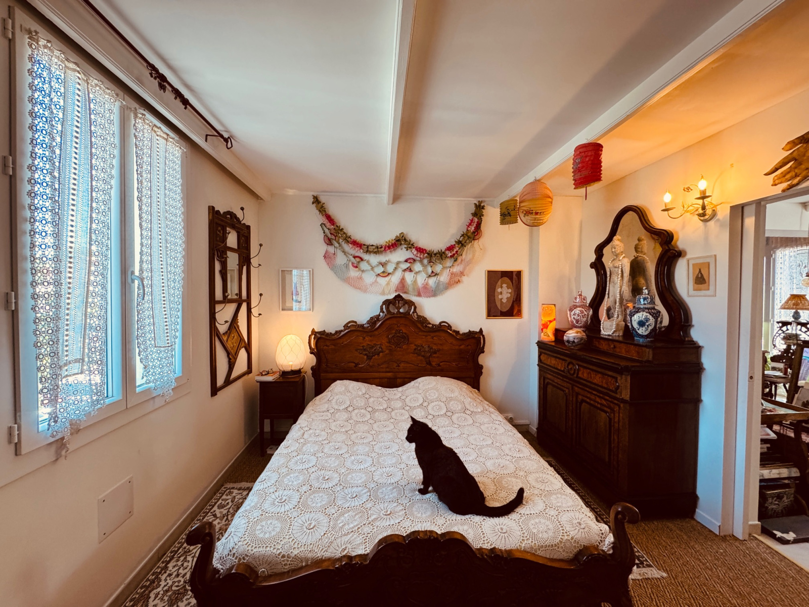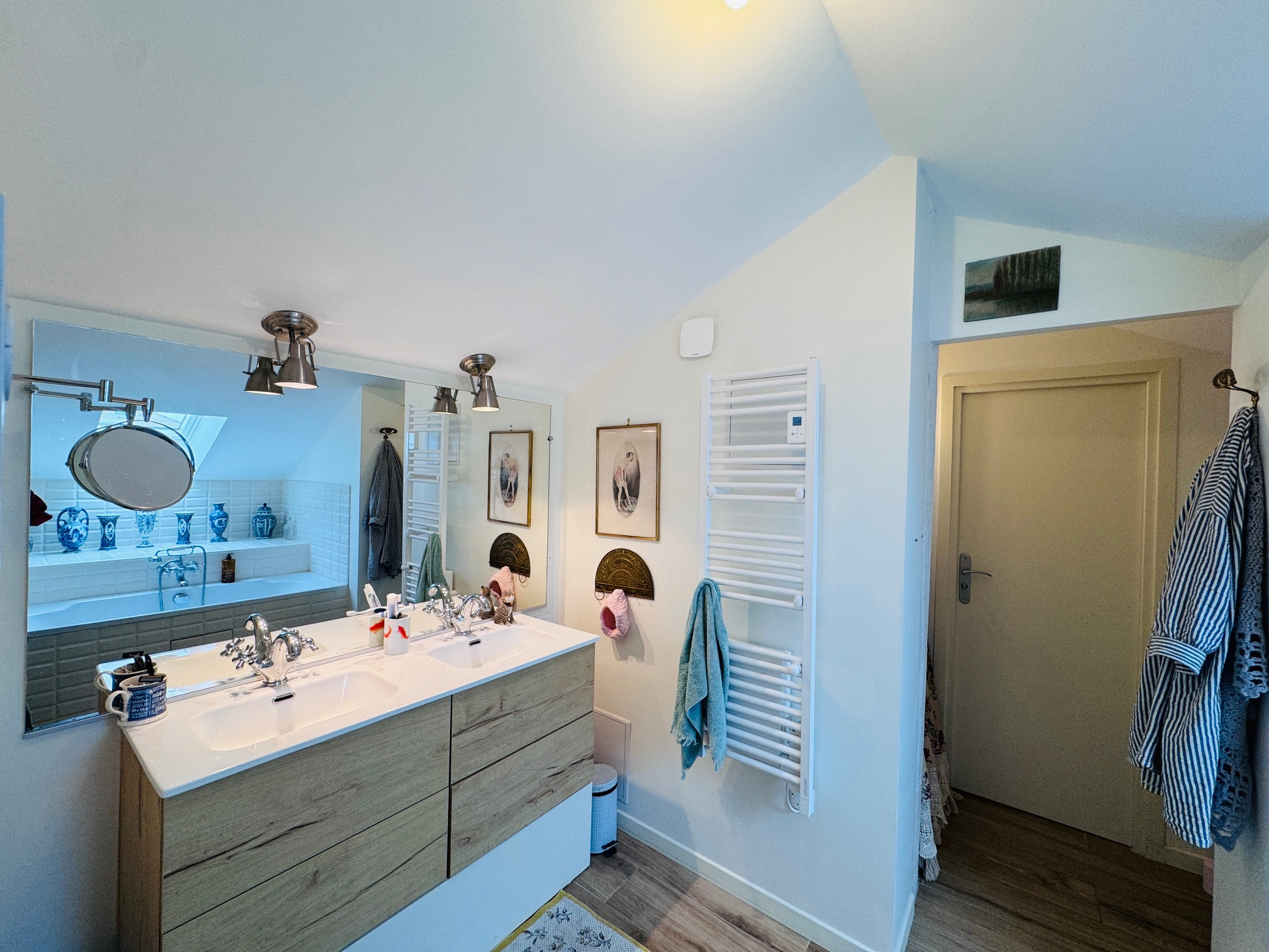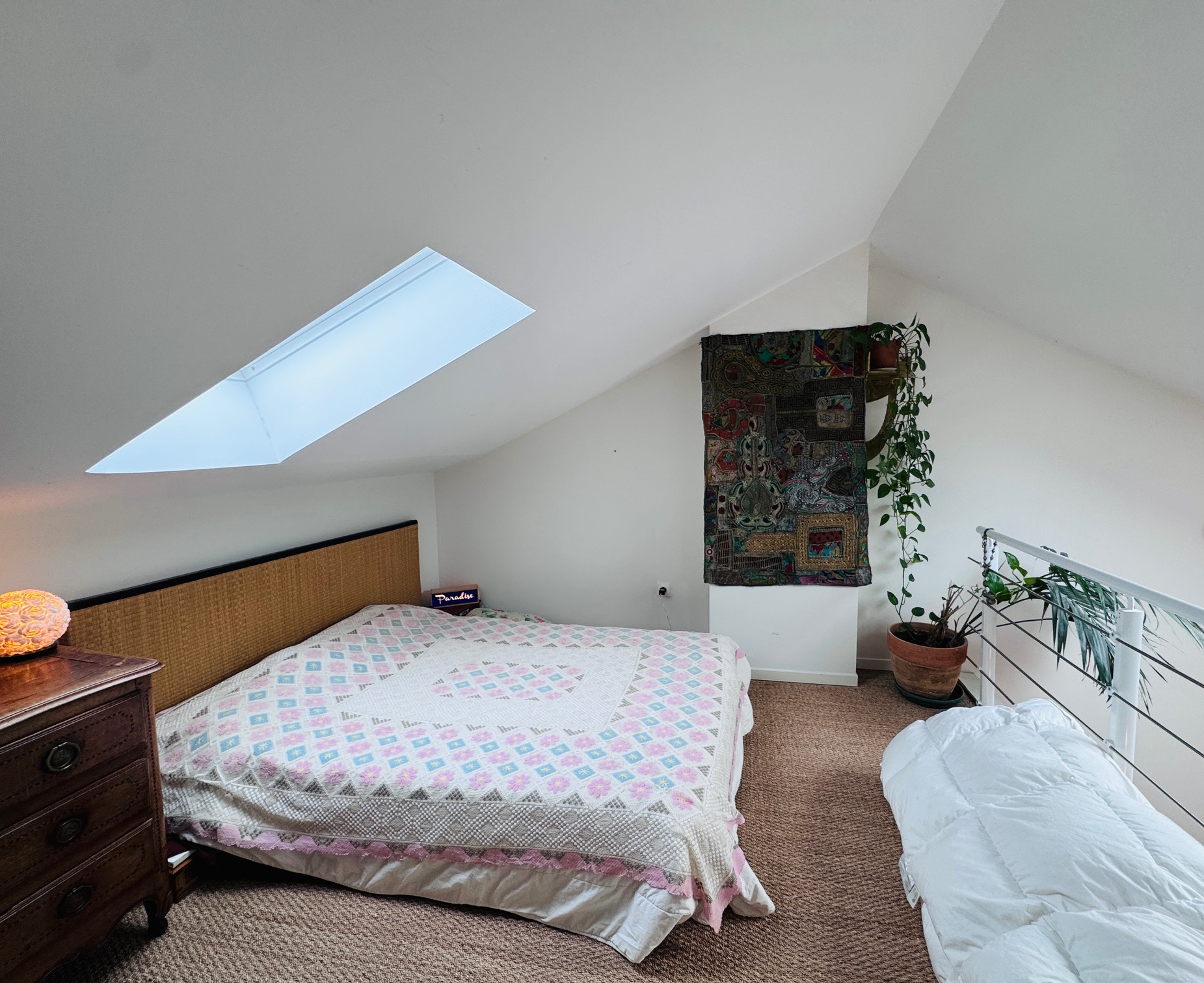 Le 1er étage se compose d'une spacieuse pièce de vie traversante d'environ 36 m², salon séjour salle-à-manger ouvrant sur terrasse au sud, d'une chambre d'environ 20 m², d'une cuisine séparée ouvrant également sur terrasse ; le dernier niveau, éclairé par plusieurs fenêtres de toit offre une grande luminosité, et comprend une chambre avec salle de bains wc, dressing et nombreux rangements.