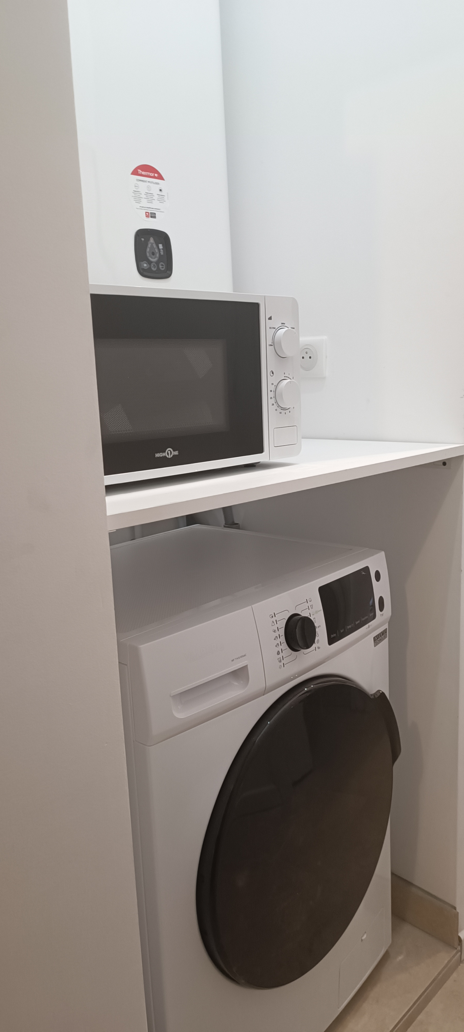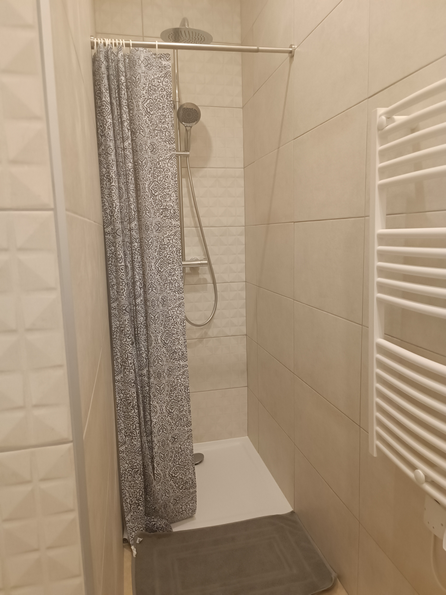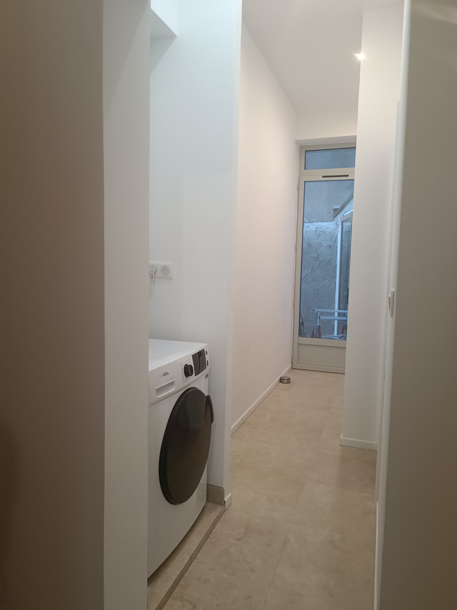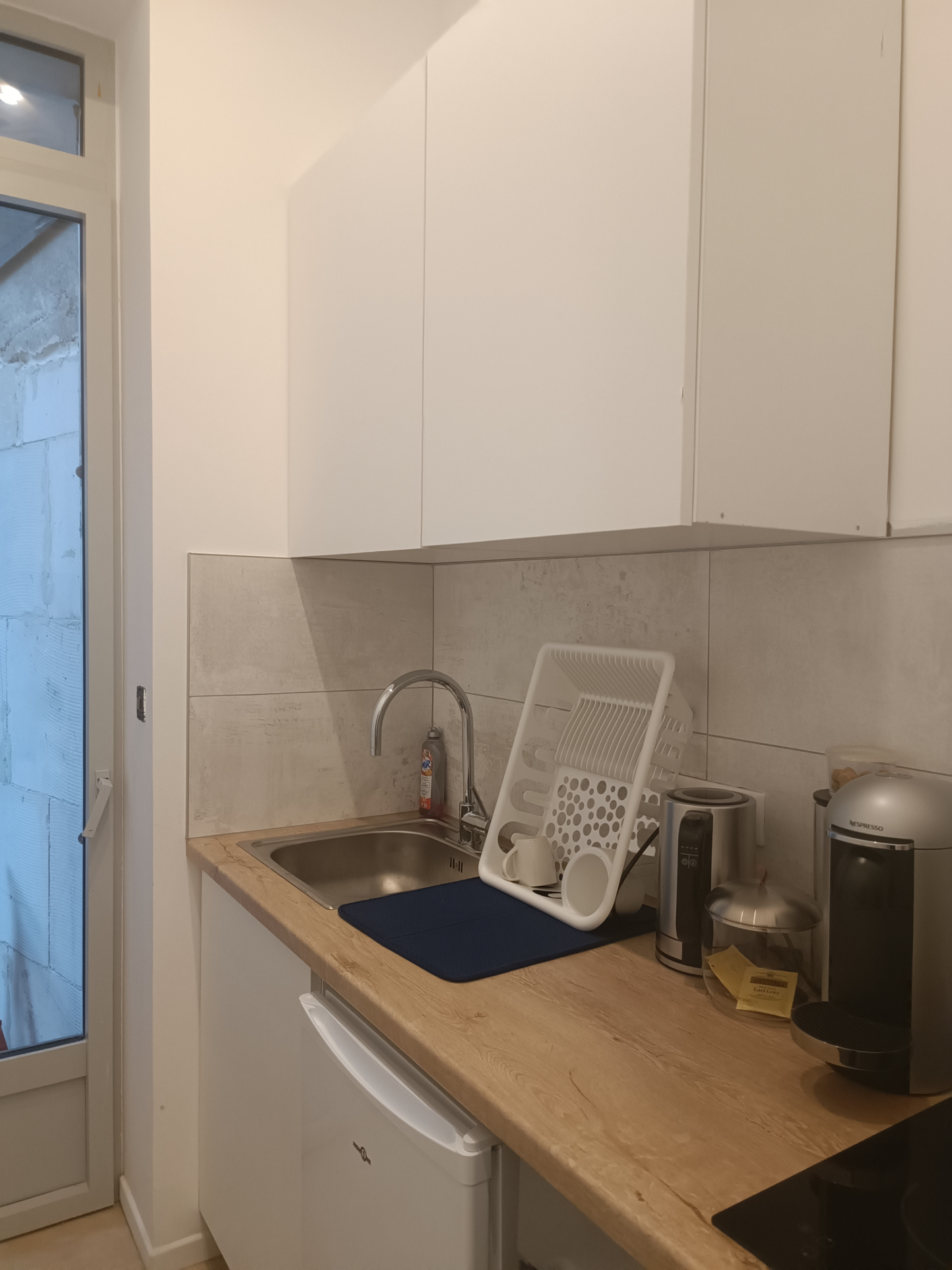 Au rdc: deux studios identiques, entièrement equipés, avec accès indépendant dans une petite curette de 9 m2, séparés par un couloir qui a une porte qui sépare le troisième lot des deux studios.