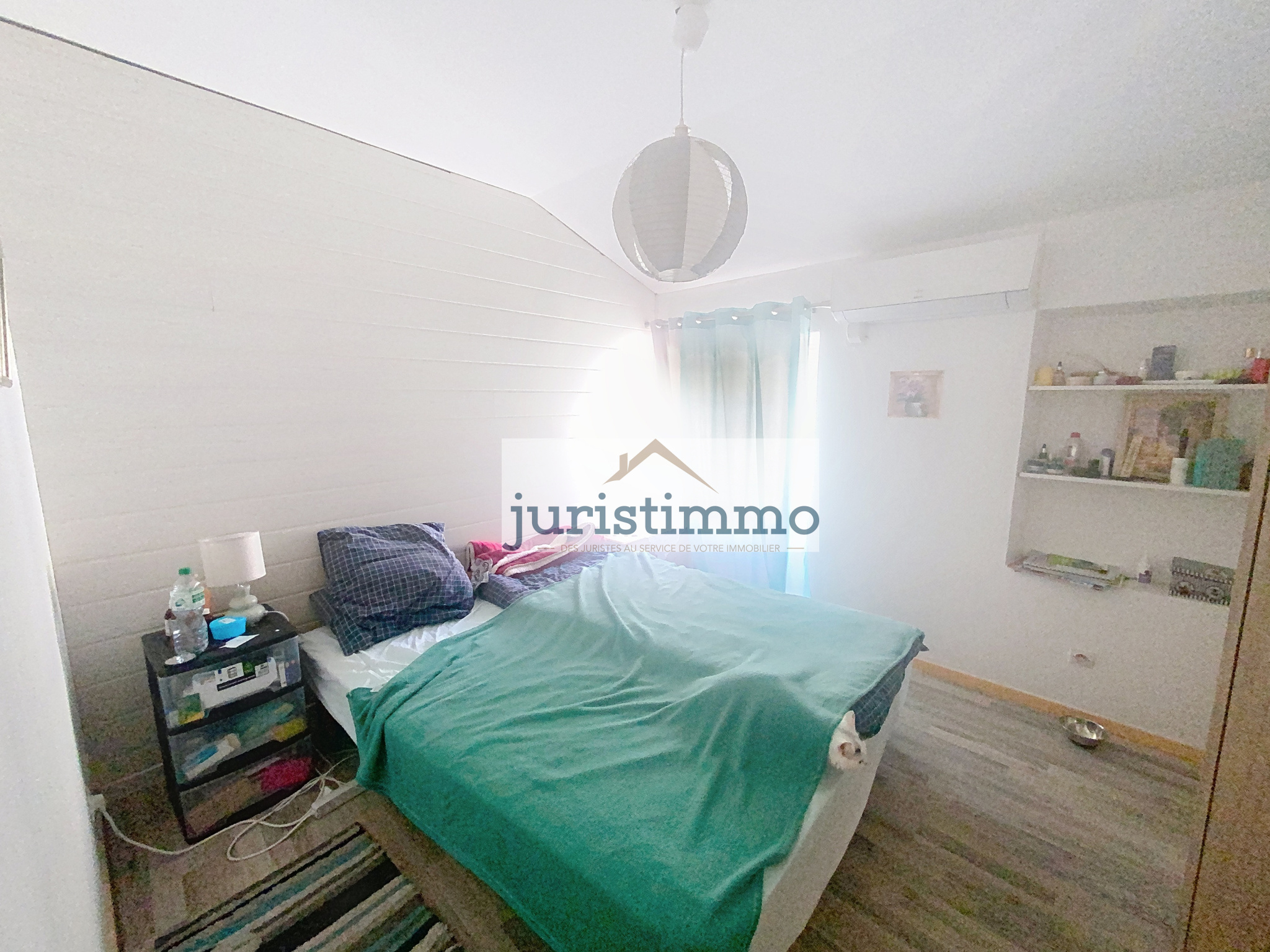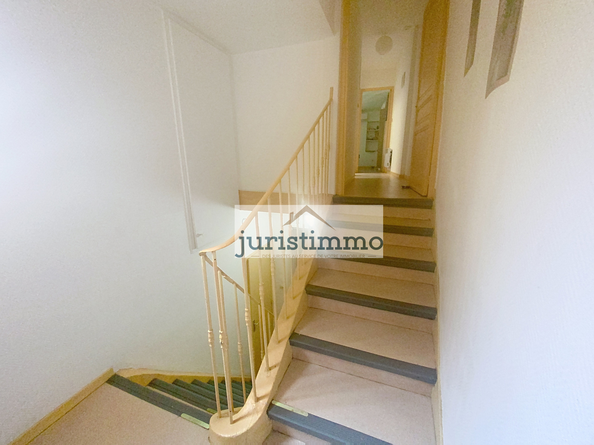 L'entrée donne sur un escalier, un dégagement de 2 m² permet l'accès à la salle de vie de 19m² environ avec la cuisine aménagée ouverte sur le salon, et un un wc de 1.25m². L'escalier permet au deuxième étage l'accès à un couloir de 4m² qui dessert une chambre de 11m², un bureau de 7m², eu une salle d'eau de 3m² environ.