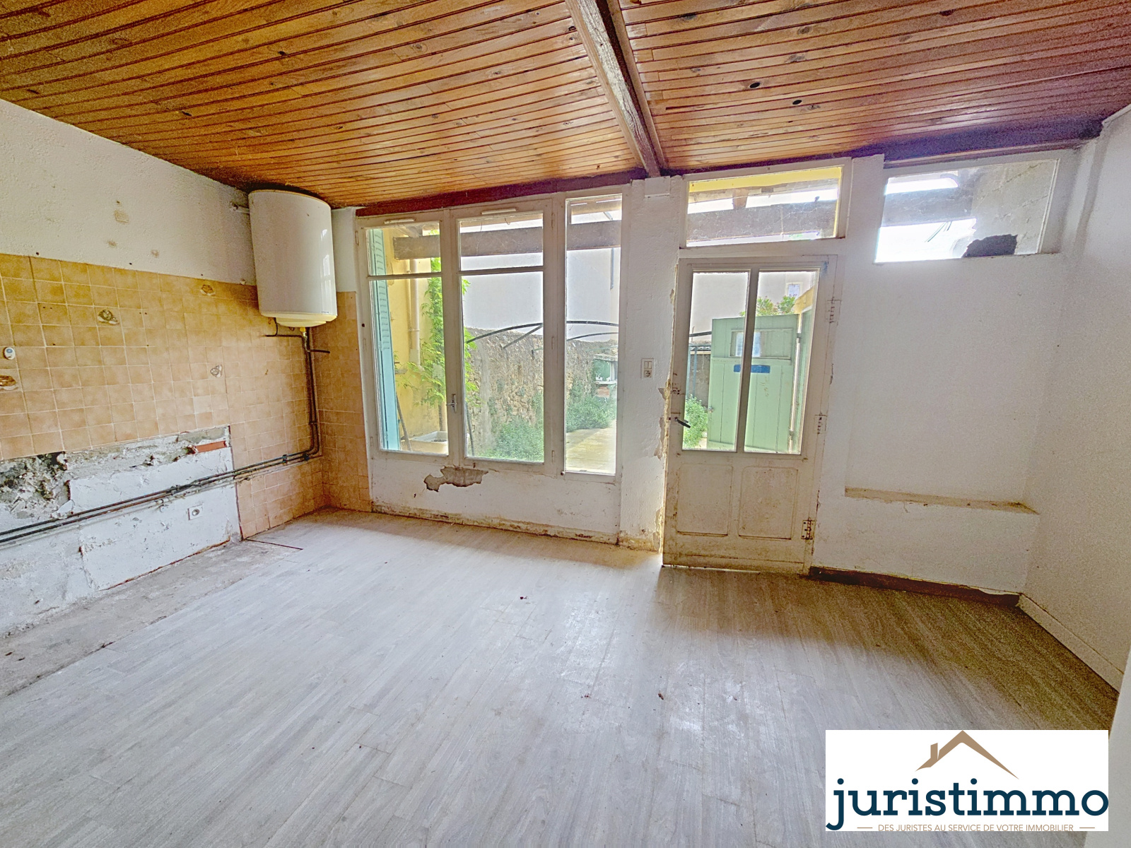 Au rez-de-chaussée, un appartement de 55 m² ouvre sur un jardin privatif de 68 m², entièrement clos par de beaux murs en pierres apparentes. Ce logement, aujourd’hui vide, nécessite une rénovation complète. La pièce de vie de 41 m², autrefois deux pièces distinctes, offre un bel espace avec poutres apparentes. Une salle d’eau de 3,8 m² complète ce niveau, ainsi qu’une grande cave en sous-sol, équivalente à la surface de l’appartement. Ce logement était précédemment loué 480 €. Menuiseries bois, simple vitrage, présence d’une cheminée, mais aucun système de chauffage en place.