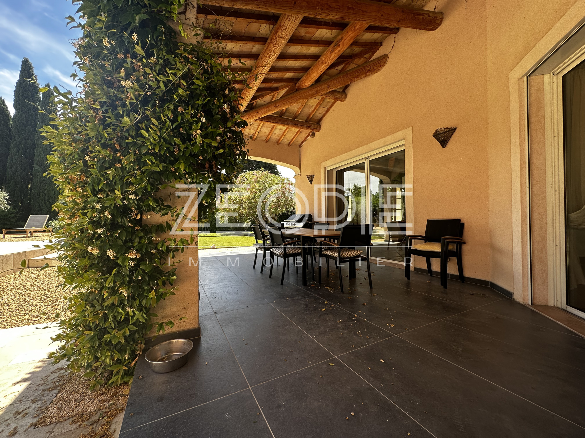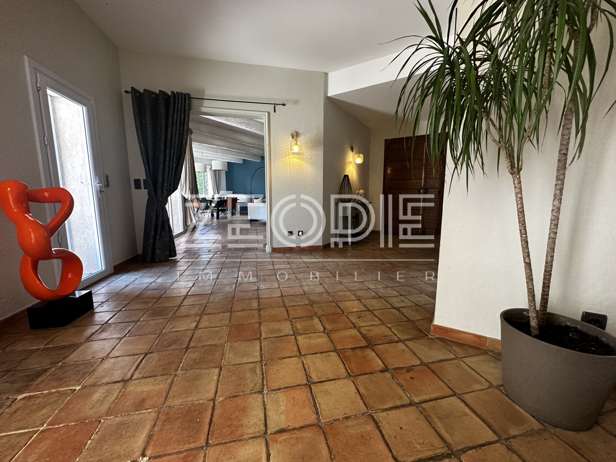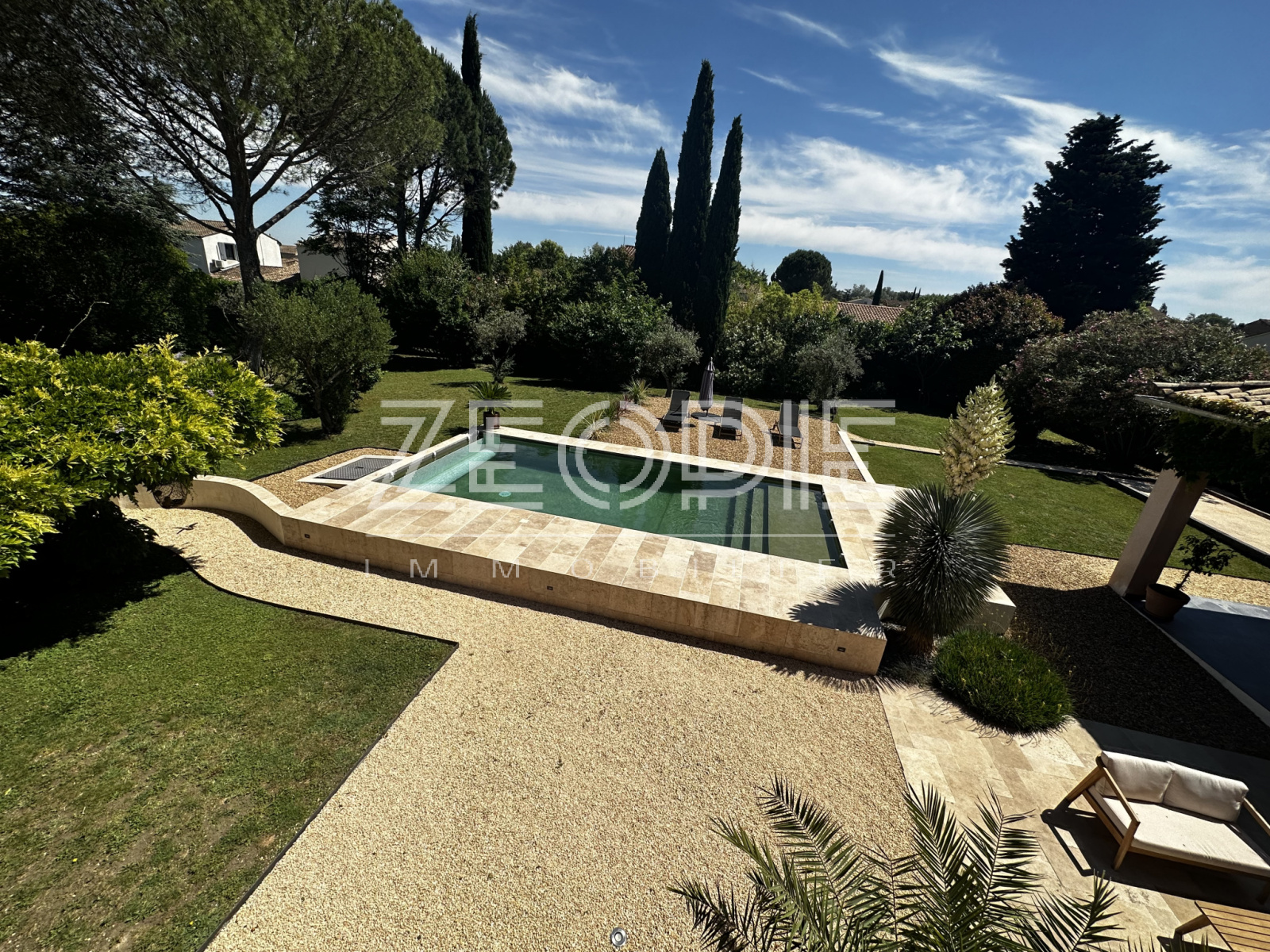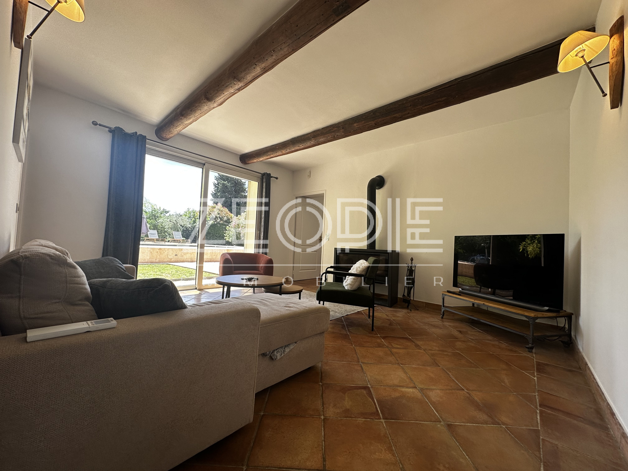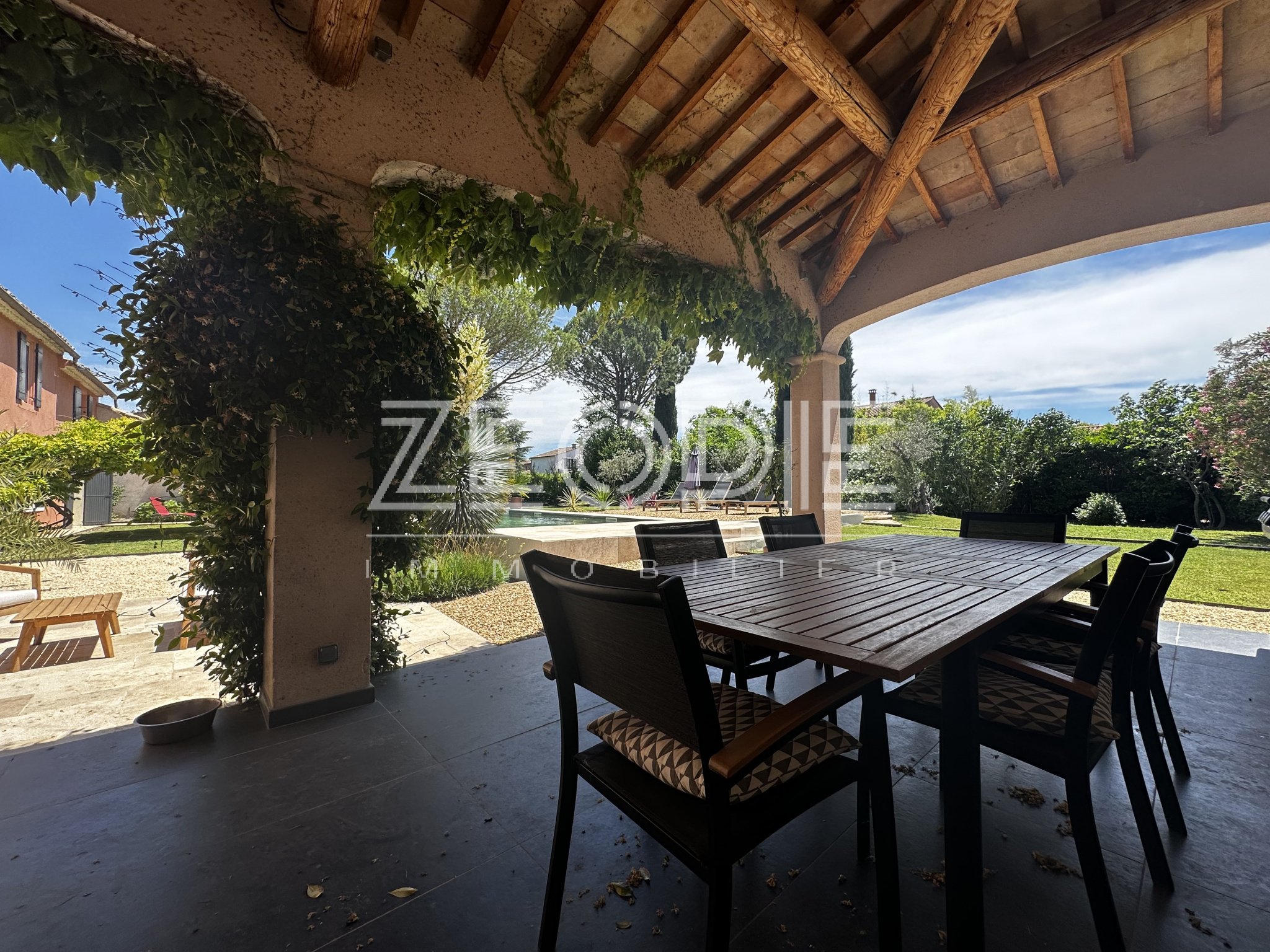 Ce mas ancien non mitoyen élevé d’un étage sur Rez de chaussé est implanté sur un jardin clos et paysage de 2000m2. Situé au calme et sans nuisance malgré sa proximité des commerces et du centre ville, ce mas ancien de 310 m2 habitables environ se compose en rez de chaussé d’un grand hall d’entrée avec placards, d’un salon / Sam de plus de 60m2 avec cheminée en pierre, d’une grande cuisine de 20m2 environ entièrement équipée et rénovée avec 2 arrières cuisine / buanderie pour le stockage et les machines à laver et sèche linge. Ensuite un petit salon / coin TV de 15m2 environ avec cheminée insert panoramique, un bureau de 15m2 et enfin une suite parentale de 25m2 environ avec placards, salle d’eau et WC privatif. Accès direct sur le jardin par porte fenêtre. A l’étage vous accéderez par un escalier central à 2 chambres sur votre droite, une de 16 m2 et l’autre de 25m2 environ. Ensuite de l’autre côté à l’étage 1 première chambre de 16m2 environ, une grande salle de bain de 13m2 avec double vasque, baignoire et douche à l’italienne. Enfin une 4eme chambre avec placards de 18m2 environ, un dressing aménagé de 10m2 et un WC séparé. La maison bénéficie de 3 garages, un premier de 40m2 environ avec 2 portes sectionnelles automatiques pour garer 2 véhicules, une cave à vin et un espace de rangement supplémentaire de 15m2 sous toiture. De l’autre côté de la maison un garage de 25m2 environ avec mezzanine en bois à l’étage de 15m2 environ. La maison a été rénovée très récemment, pour votre confort vous bénéficierez du double vitrage PVC KparK, d’un système de chauffage central par pompe à chaleur DAIKIN ( au sol au Rez de chaussé et radiateur alu à l’étage) + une climatisation réversible MITSUBISHI dans toute la propriété. Façades rénovées cette année, gouttières en zinc, toiture complètement rénovée également, tout à l’égout… Matériaux de qualités ( carrellage terre cuite, parquet, poutres… ) exposition plein sud, terrain de boules, arrosage automatique, raccordement à la fibre, forage et arrosage automatique, piscine traditionnelle chauffée de 9 mètres x 4, portail automatique, une terrasse couverte de 25m2 et une autre non couverte de 20m2. Parc arboré et clos de 2000m2 au calme et sans vis, possibilités d’agrandissements. Possibilité de vente entierement meublée et équipée.