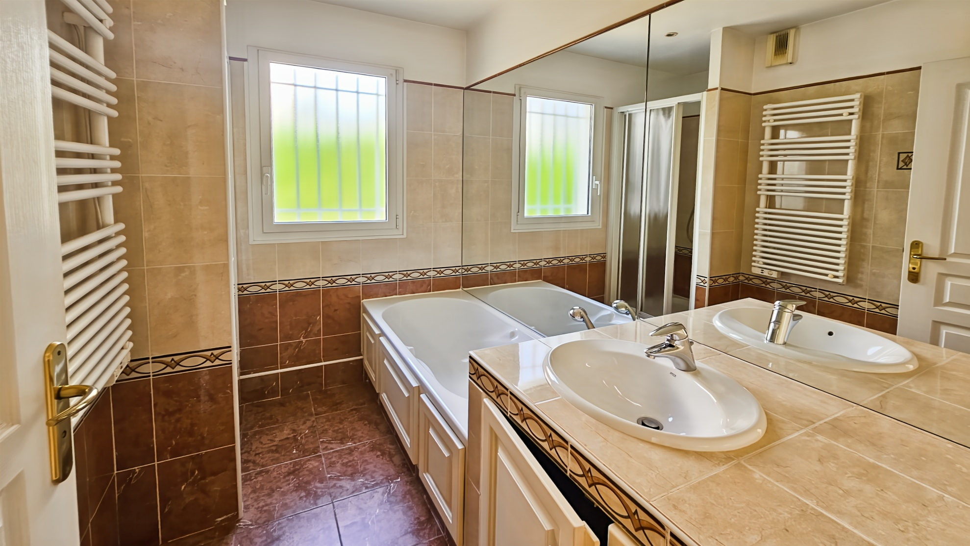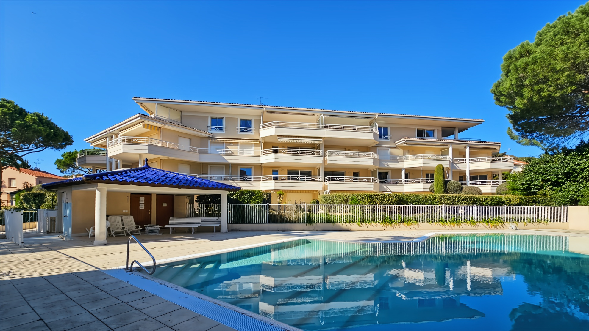Boulouris, appartement 3 pièces en rez-de-jardin, avec garage et cave. Dans une très belle copropriété de 2002 avec piscine, profitez de cet appartement avec la jouissance d'un jardin de 137 m² ; vous disposerez également d'une terrasse occupant une surface de 22.88m² , ce qui élève la surface utile à 96.29m². Le bien se compose d'une entrée avec placard, un salon séjour, une cuisine, 2 chambres, une salle de bain avec baignoire et douche; et wc indépendant.