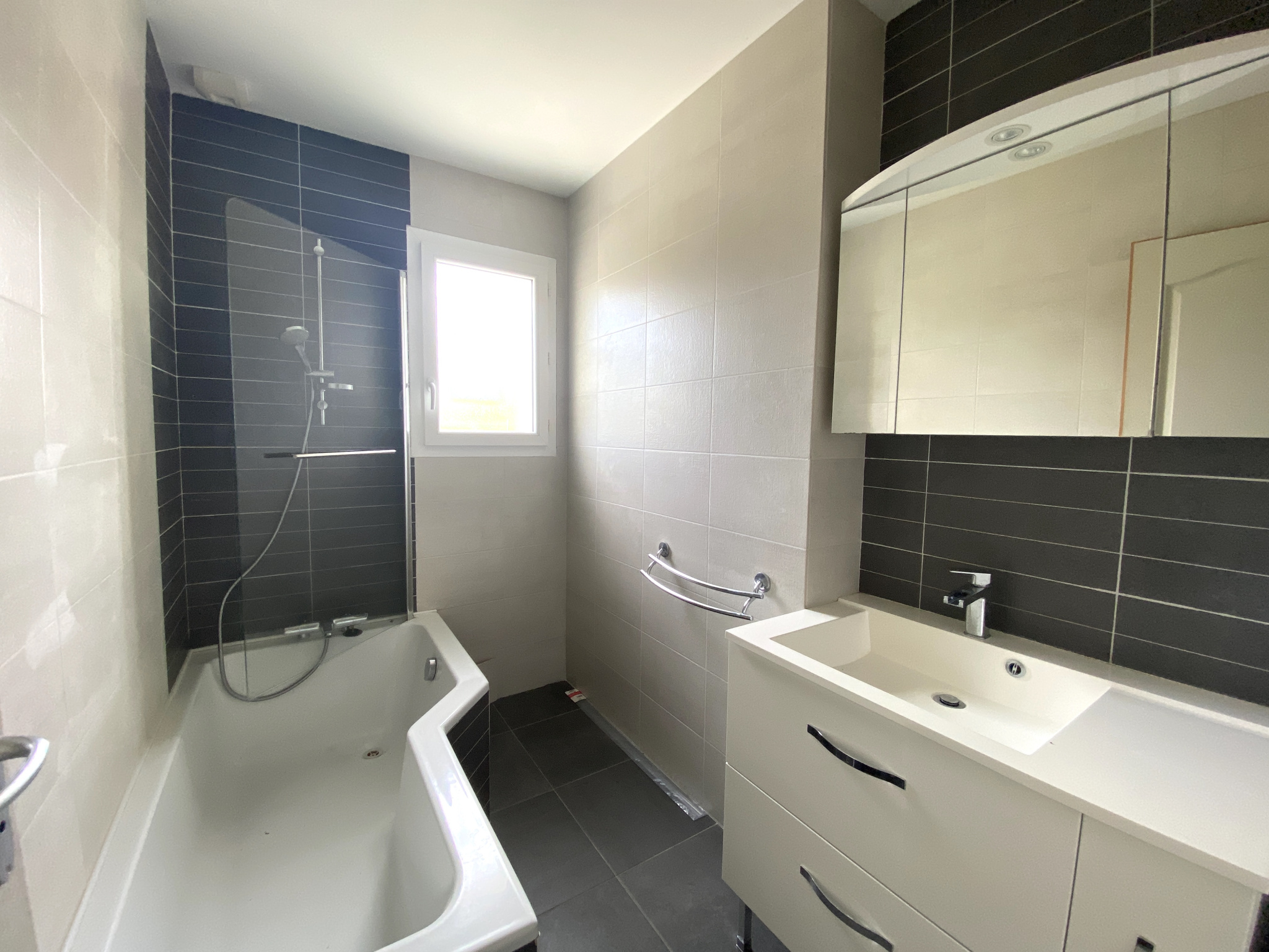 Elle est composé d'une entrée, d'une pièce de vie avec cuisine ouverte (entièrement équipée) de presque 40m2 donnant sur une grande terrasse et le jardin, de trois chambres avec placards, d'une salle de bain, de wc indépendants et d"un cellier/buanderie.