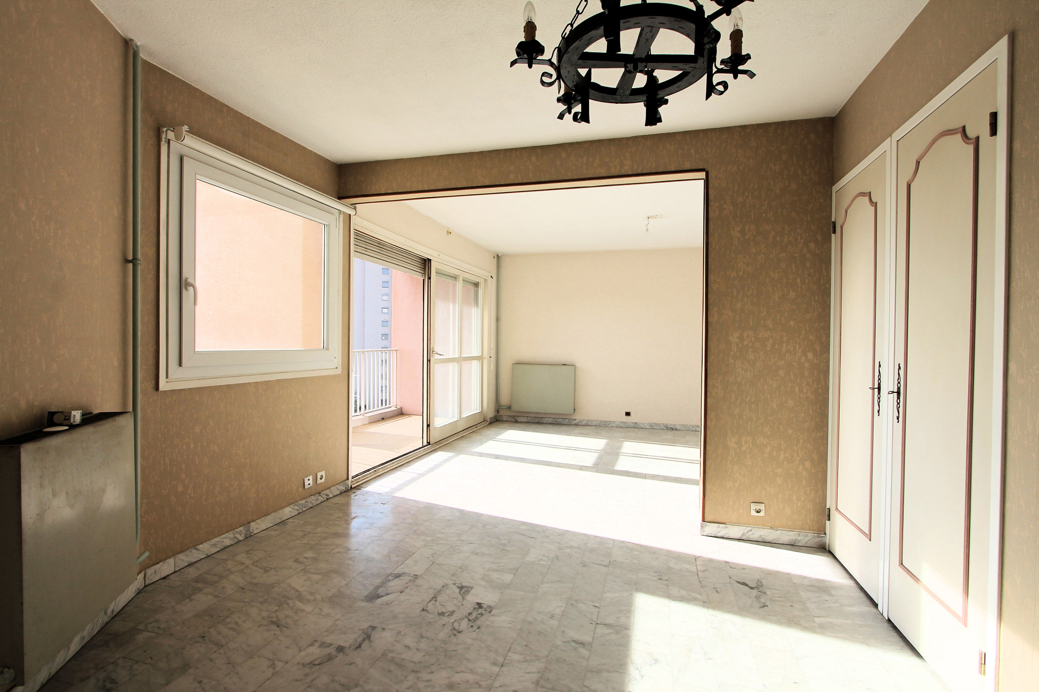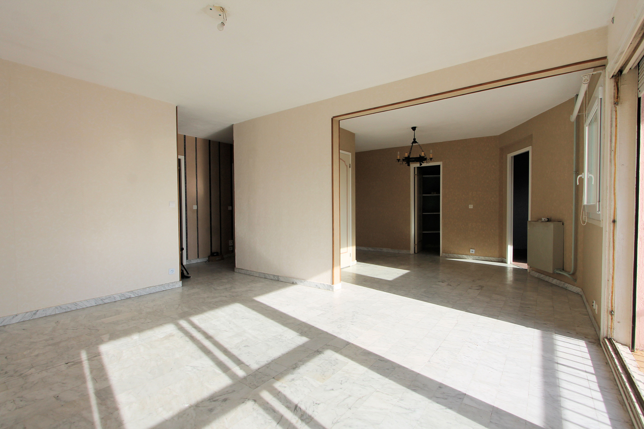 L'appartement se compose d'un hall d'entrée, d'un double salon lumineux de 30m2 ouvrant sur une jolie terrasse de 5.71m2 avec vue dégagée, d'une cuisine séparée de 10m2, de trois chambres de 12m2, 10m2 et 9m2, d'une salle de bains, d'une salle d'eau et d'un wc séparé.