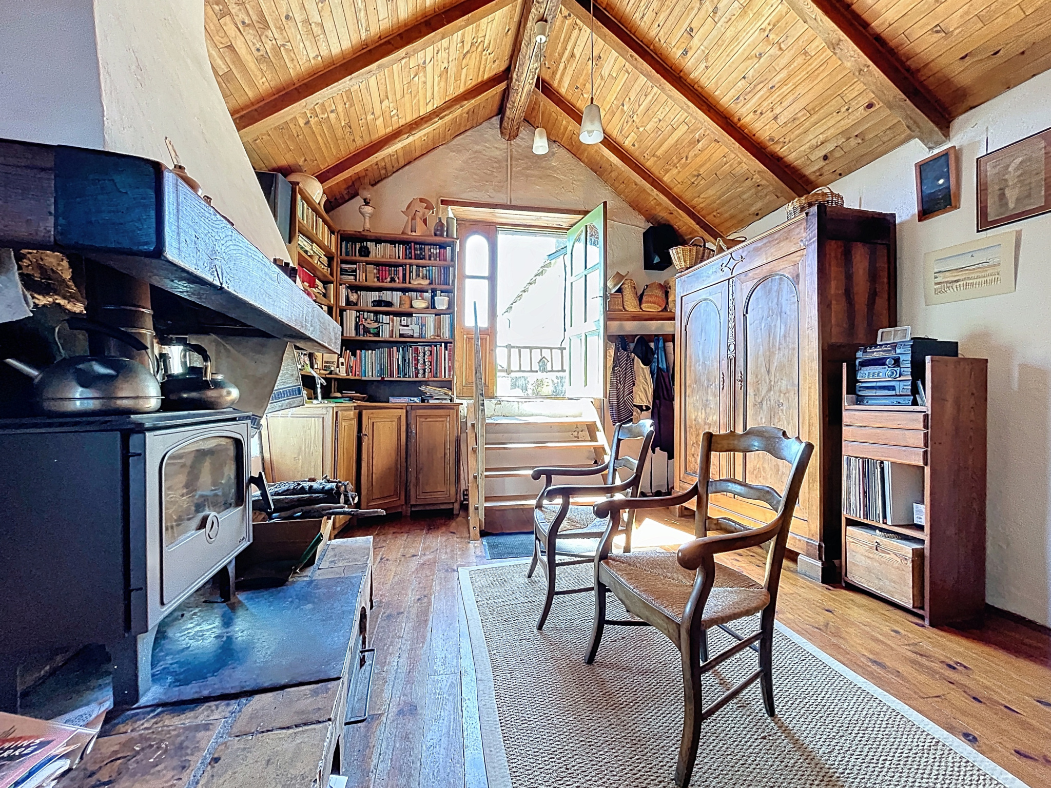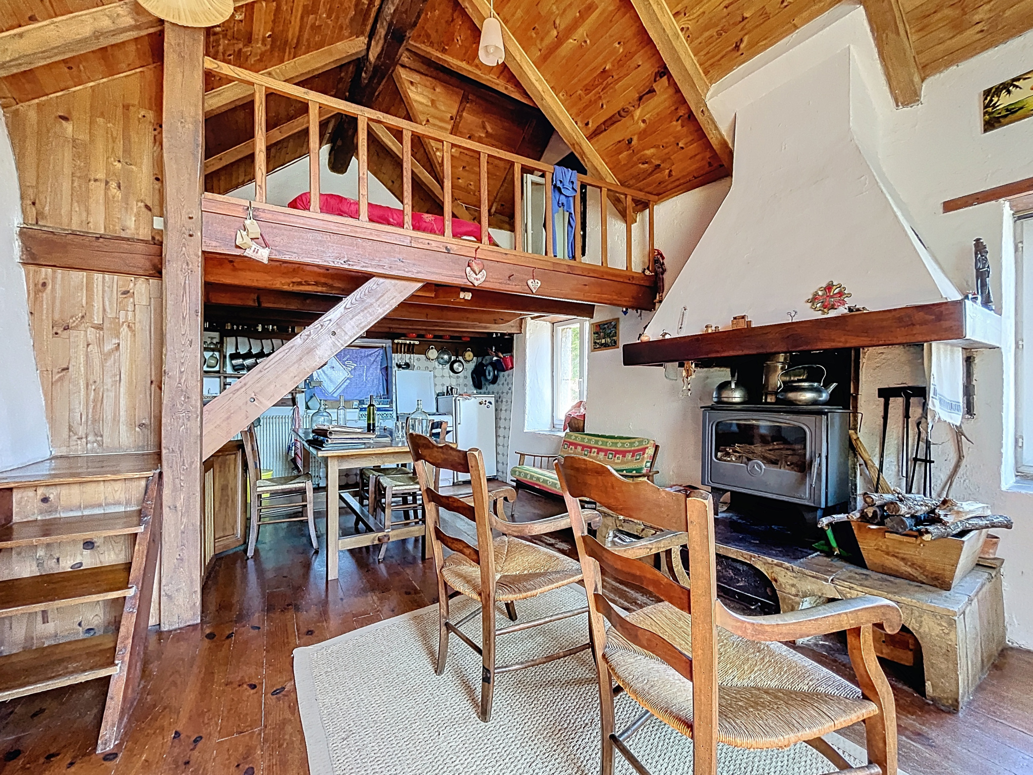 Une maisonnette pleine de charme d’environ 28 m², idéale pour recevoir famille ou amis, ou pour un projet de location saisonnière. Accessible par une jolie terrasse, elle comprend une pièce de vie chaleureuse avec poêle à bois et une mezzanine de couchage.