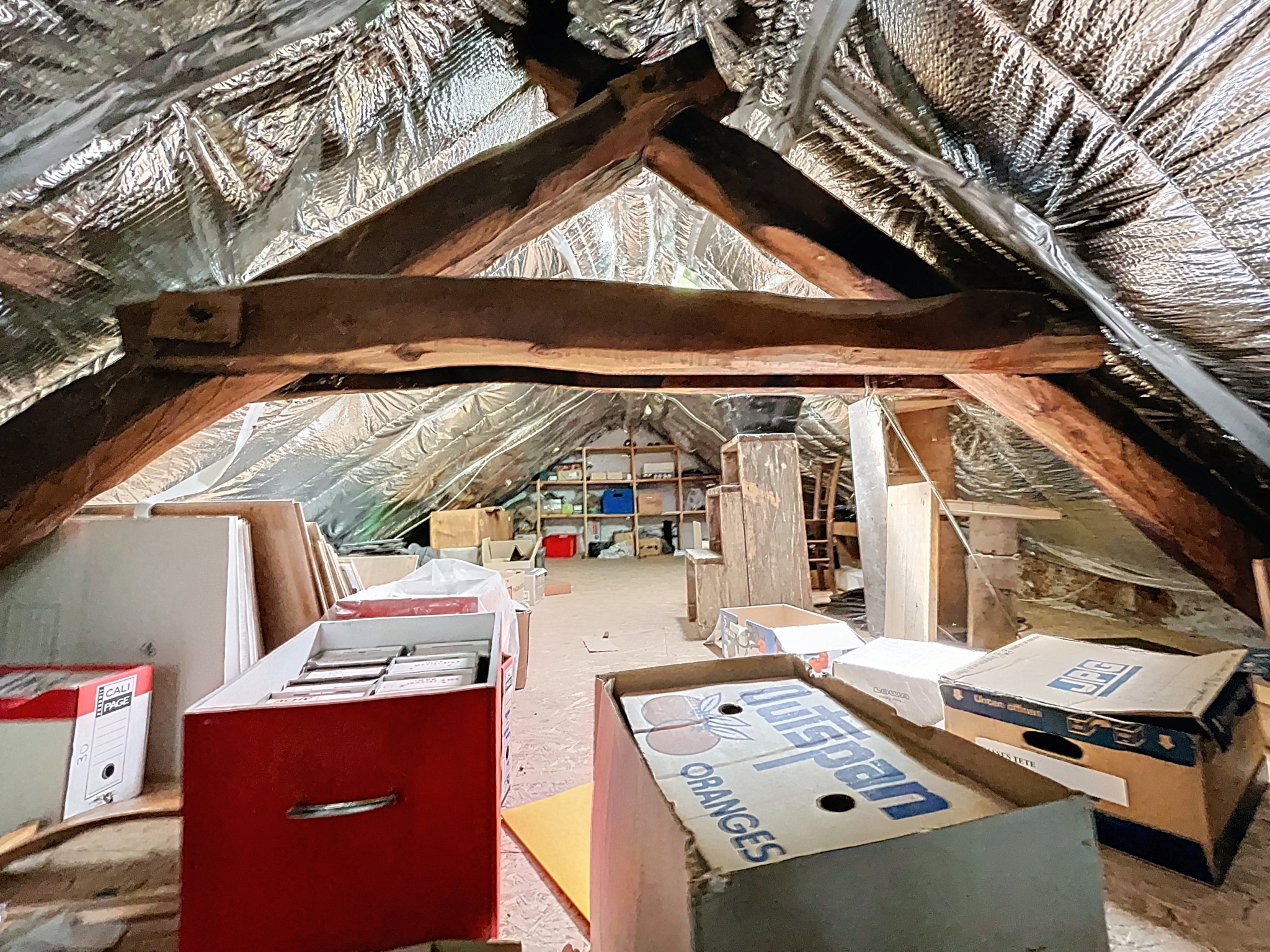 Pour les amoureux de nature, un terrain boisé de 2 710 m² situé à proximité est également compris dans la vente, avec un abri voiture pour stationner à l’ombre des arbres.