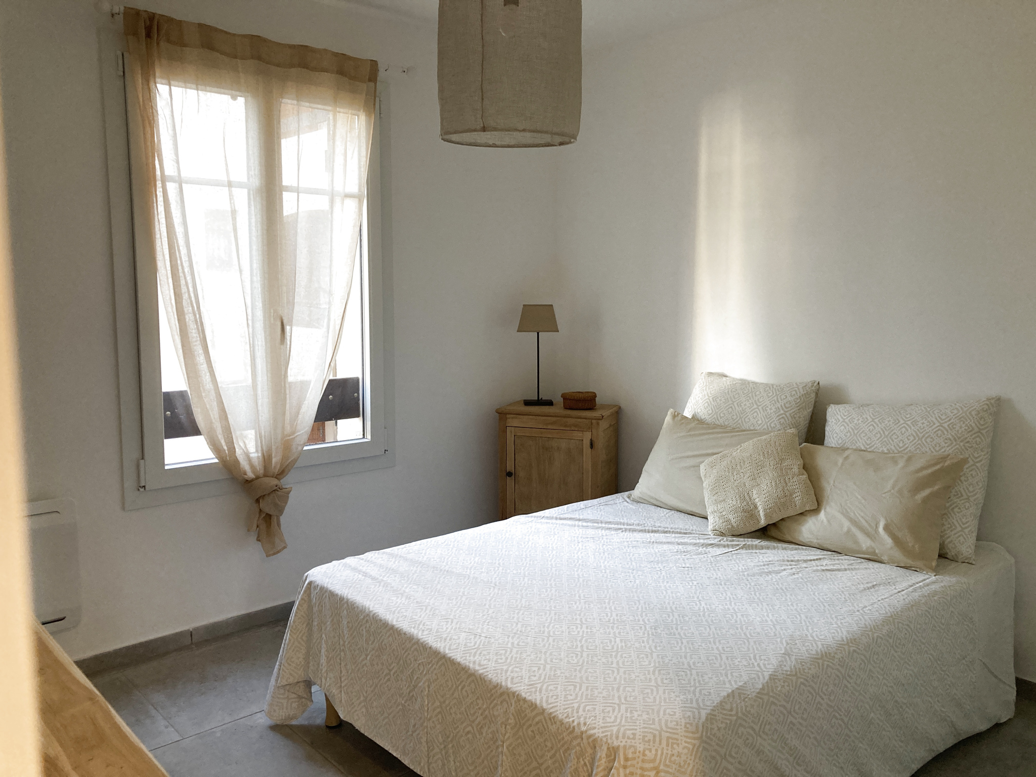 Cet appartement entièrement rénové se compose d'un hall avec rangements, une belle et lumineuse pièce à vivre équipée de la climatisation réversible orientée OUEST accédant à une terrasse de belle dimension, une chambre orientée EST avec placard coulissant accédant directement à la salle de bain bénéficiant d'un balcon pour étendre le linge ainsi qu'un toilette indépendant.