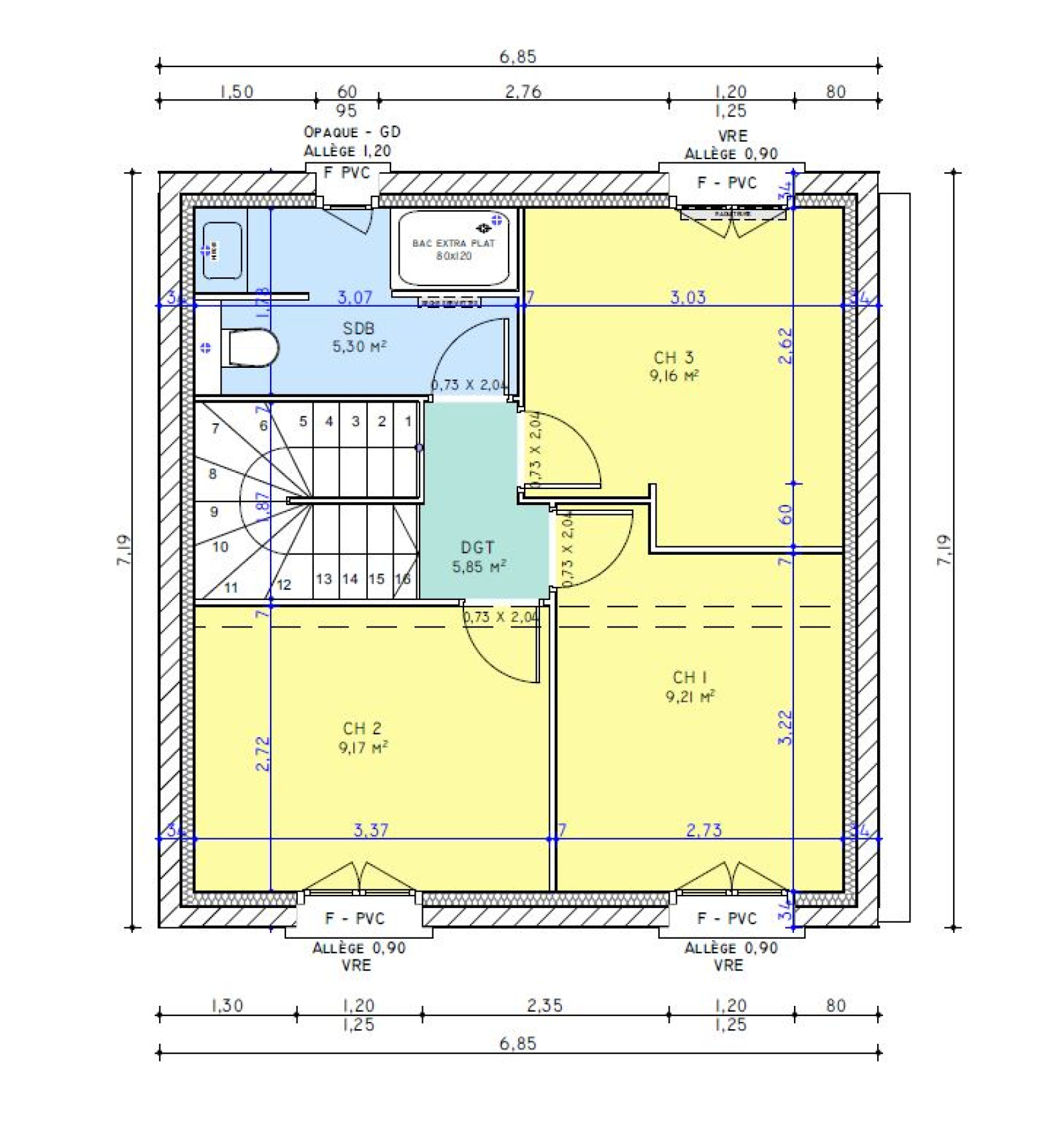 Maison T4 de 78.19 m² mitoyenne 1 côté orientée EST-SUD-OUEST avec extérieur privatif environ 52.37 m² + 2 places de stationnement