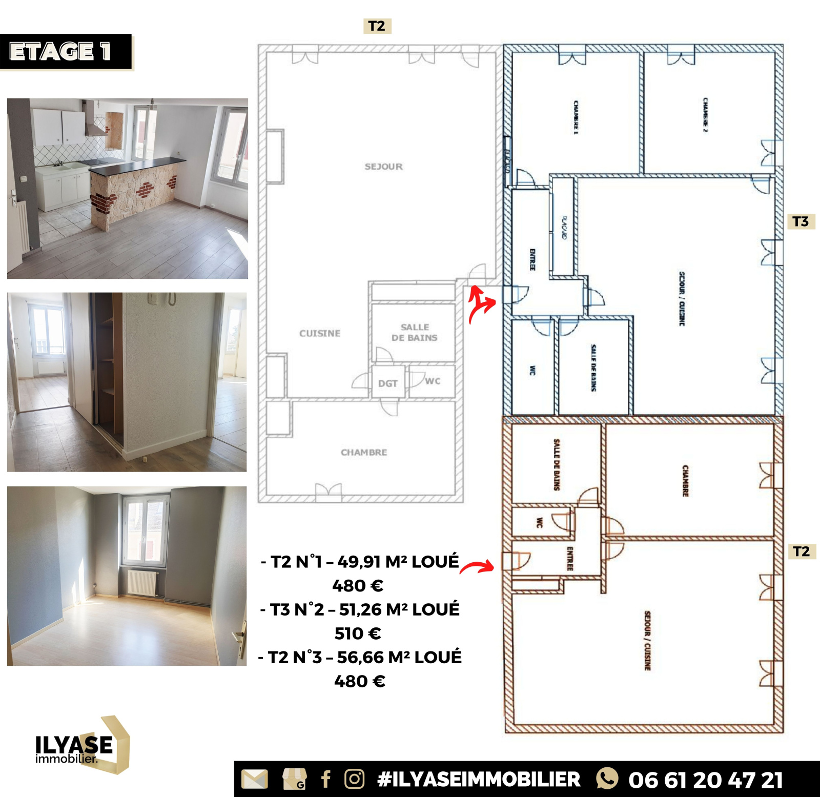 - T2 N°1 – 49,91 m² loué 480 €