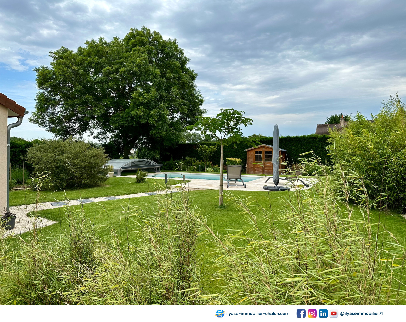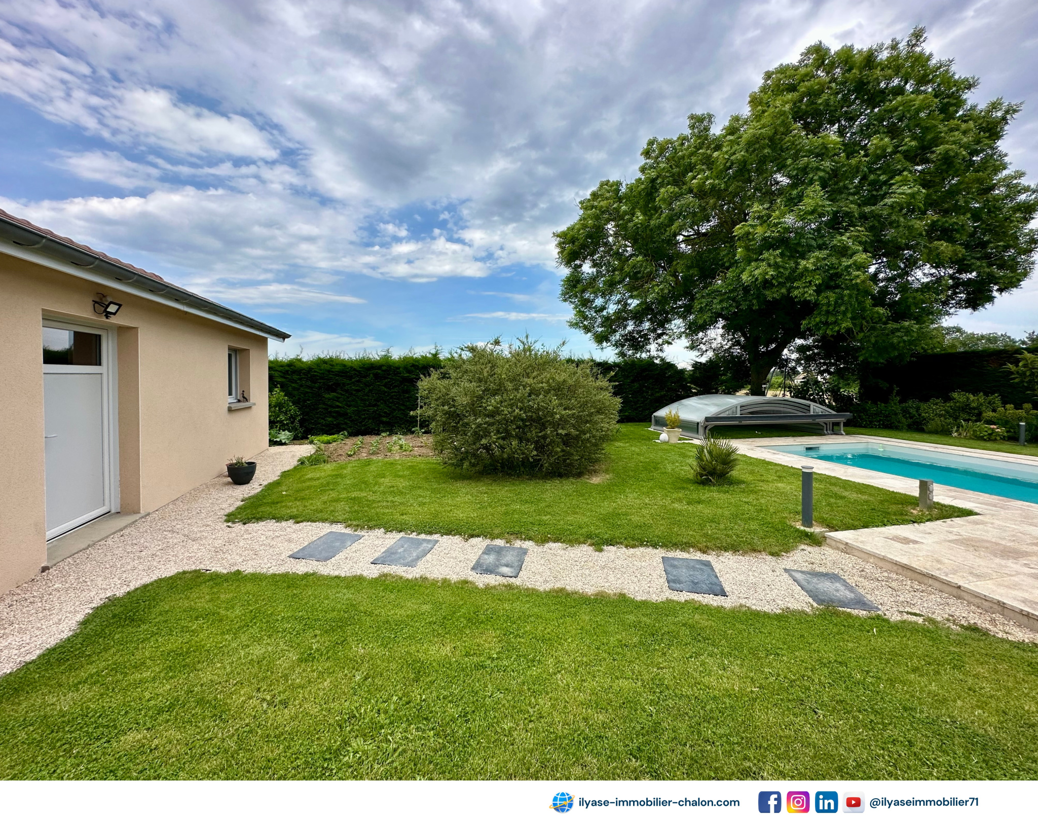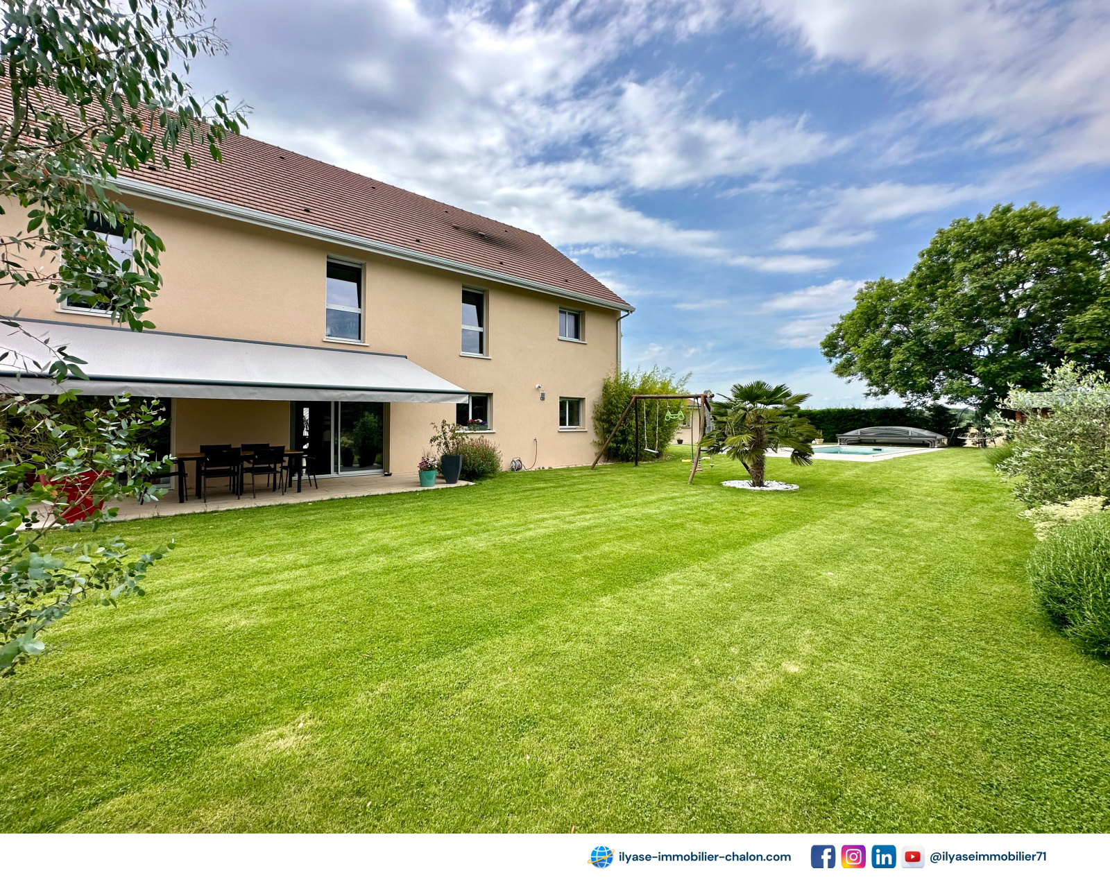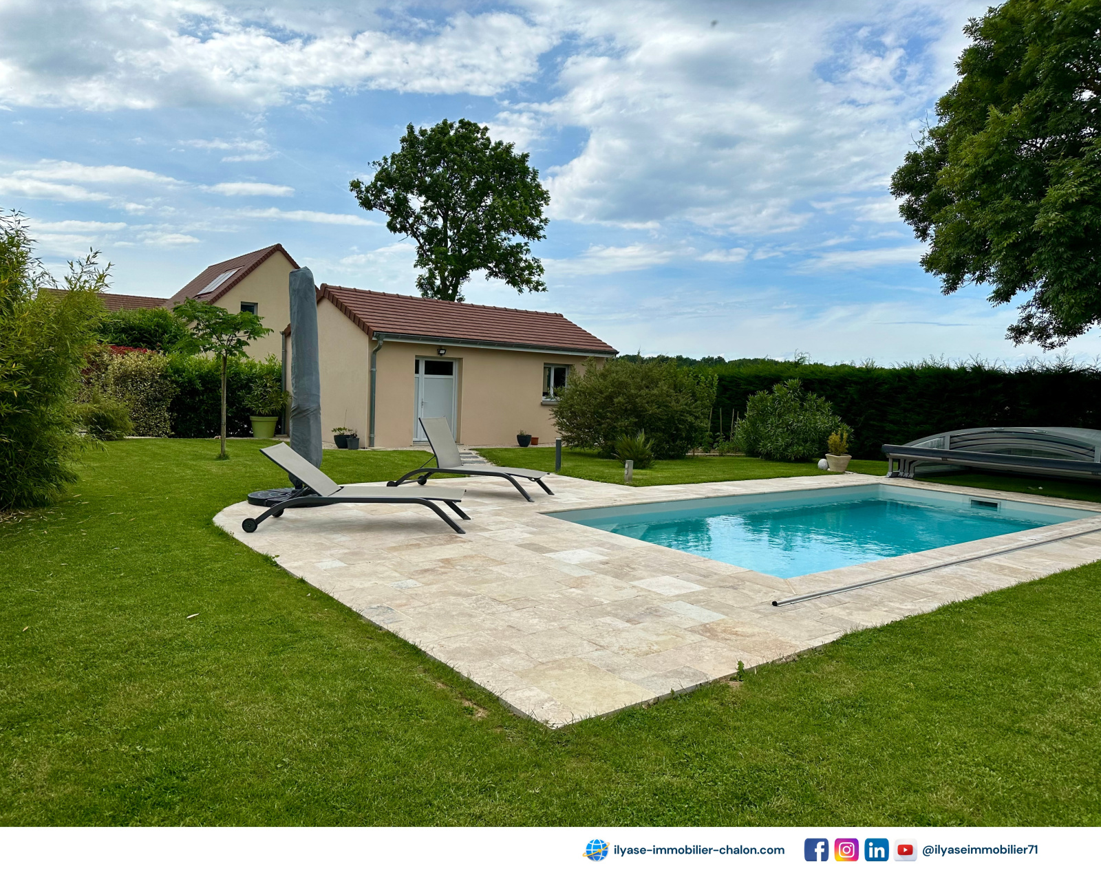 - 1 piscine entièrement aménagée, éclairée et abri sécurisé (dome coulissant), qui vous rassurera et vous fera bénéficier de vos extérieurs en toute tranquillité,