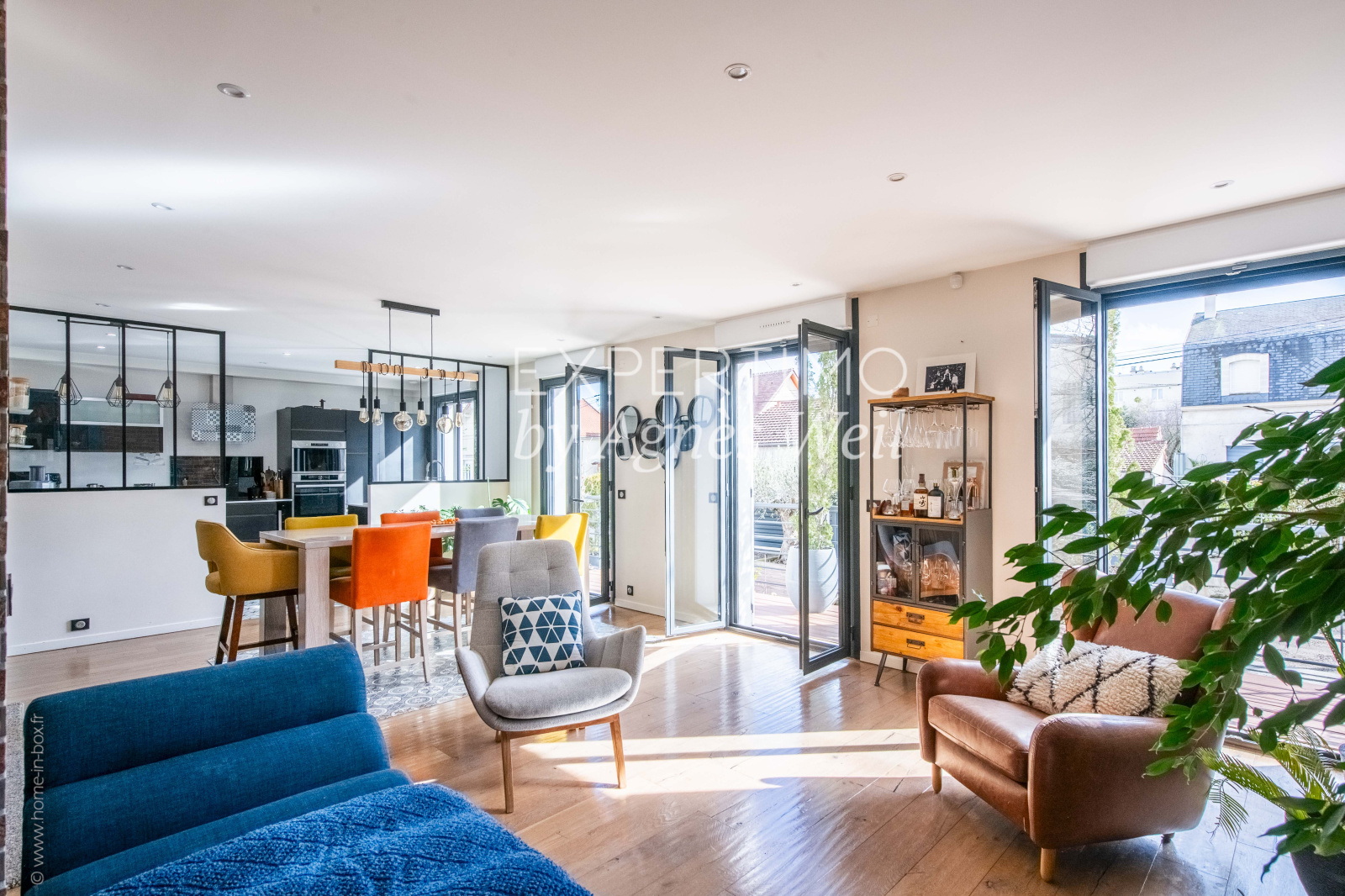 A 5' DE MAISONS-LAFFITTE - SARTROUVILLE - LA PLAINE - COUP DE COEUR - BIEN D'EXCEPTION. Cette maison familiale exceptionnelle vous séduira par ses nombreux atouts. Contemporaine, non mitoyenne, très lumineuse, elle est située au calme, avec son emplacement idéal dans une impasse. Sa surface habitable est de 194 m2 et sa surface au sol de 248 m2. Construite en 1970, la maison a été entièrement rénovée en 2017 avec de beaux matériaux. Elle est fonctionnelle, comprend 8 pièces, dont 5 chambres et ravira petits et grands. Passé le portail et le patio, vous entrerez dans un magnifique espace à vivre spacieux et ensoleillé de plus de 73 m2 donnant sur une terrasse en bois Fiberdeck, qui comprend un salon avec un joli poêle, une salle à manger, un coin TV, un bureau et une cuisine semi-ouverte, aménagée et équipée, avec sa verrière d'atelier qui lui confère beaucoup de cachet. Cet espace est prolongé par une belle véranda qui surplombe le jardin à l'arrière de la maison. Egalement à cet étage un WC invités et une salle de sport. Vous emprunterez ensuite l'escalier qui vous conduira au palier du 1er étage qui dessert 3 chambres (ou 2 chambres et 1 bureau), 1 salle d'eau avec WC et 1 suite parentale avec baignoire contemporaine, douche à l'italienne et grand dressing. Vous redescendrez pour arriver au rez-de-jardin qui dessert 1 grande pièce qui peut être une salle de musique, de jeux et une buanderie. 2 chambres et 1 salle d'eau avec WC sont également présentes à cet étage. Vous vous dirigerez ensuite vers l'espace sauna et hammam. Vous pourrez même y ajouter un jacuzzi. Tous ces espaces peuvent être repensés selon vos goûts et vos envies. Possibilité de créer une dépendance séparée au rez-de-jardin. Un grand garage complète ce bien. Double vitrage. Nombreux rangements. Domotique. Volets électriques. Fibre. Alarme. Caméras. Visiophone. Portail électrique. Electricité et gaz neufs et aux normes. Chaudière Frisquet récente (2017). Toiture et façade impeccables. Aucun travaux à prévoir. DPE D, sans anomalie. Très bon voisinage. Proximité crèches, écoles, commerces (Franprix à 5' à pied, Carrefour Montesson à 20' à pied et 5' en voiture) et transports (nombreux bus : 5, S2, S7, 501, 502, 503 ; gare de Sartrouville à 10' à pied : RER A (35' pour Paris-Montparnasse) et train ligne J (17' pour Paris Saint-Lazare) et ligne L (24' pour Paris Saint-Lazare). Proche parc de l'Intendance et parc de Maisons-Laffitte. Bienvenue pour les visites !
