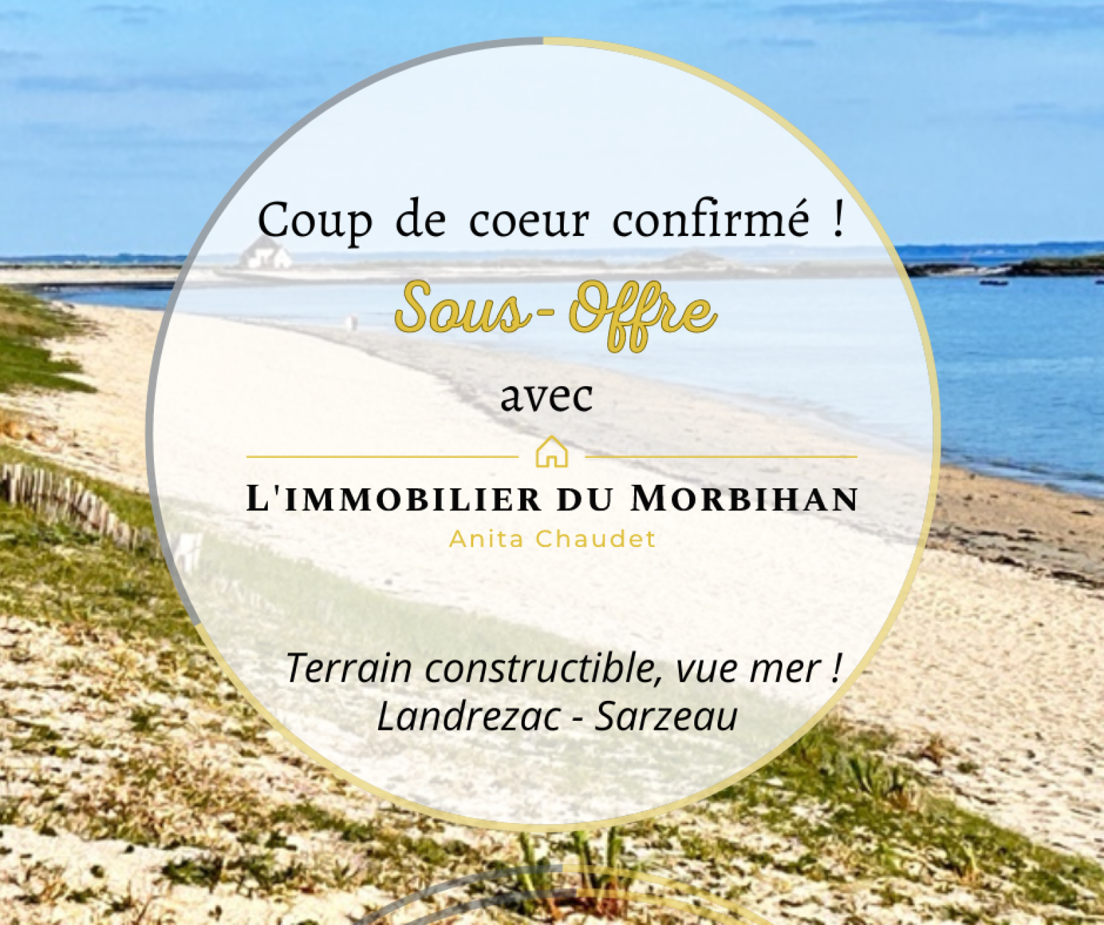 Sous-Promesse de Vente avec L'immobilier du Morbihan - L’immobilier du Morbihan dispose d'un large choix de terrains supplémentaires sur la presqu'île de Rhuys. Je vous invite vivement à me contacter pour obtenir de plus amples informations à ce sujet. Les informations sur les risques auxquels ce bien est exposé sont disponibles sur le site Géorisques : www.georisques.gouv.fr . Anita Chaudet - L’immobilier du Morbihan - 06 61 81 46 74 - Bureau sur Landrezac - Sarzeau