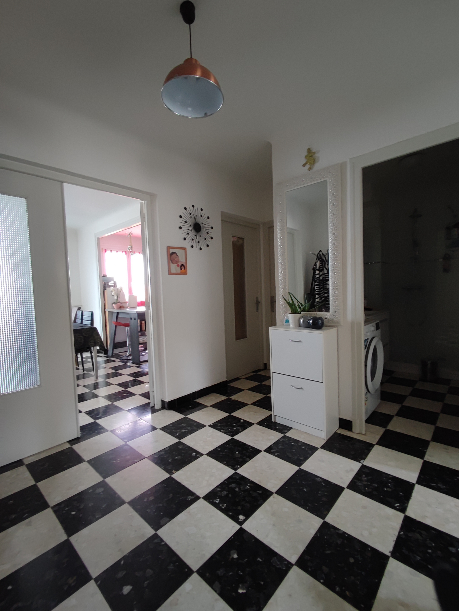 Au 2ème et dernier étage, un appartement T3 de 75m2 en très bon état, rien à prévoir. Cuisine ouverte sur salon, deux chambres avec placard, une salle d'eau et un wc. ( actuellement loué 727€/mois avec un garage au RDC )