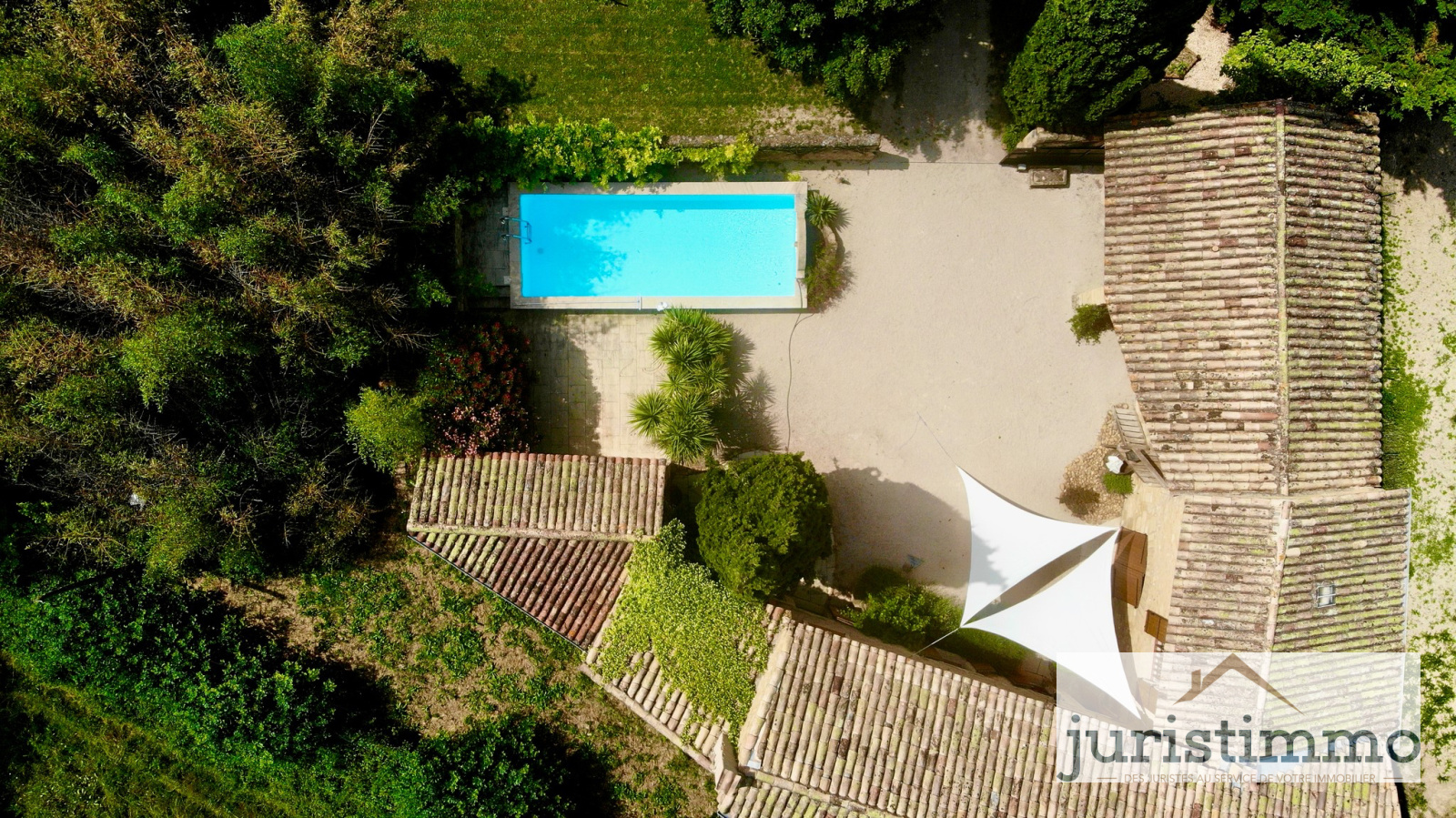 La grande cour ensoleillée et sans vis-à -vis propose une piscine ainsi qu’une grange dans laquelle imaginer une extension de l’habitation et/ou une cuisine d’été. Un jardin arboré ainsi qu’un champ d’oliviers complètent l’extérieur.