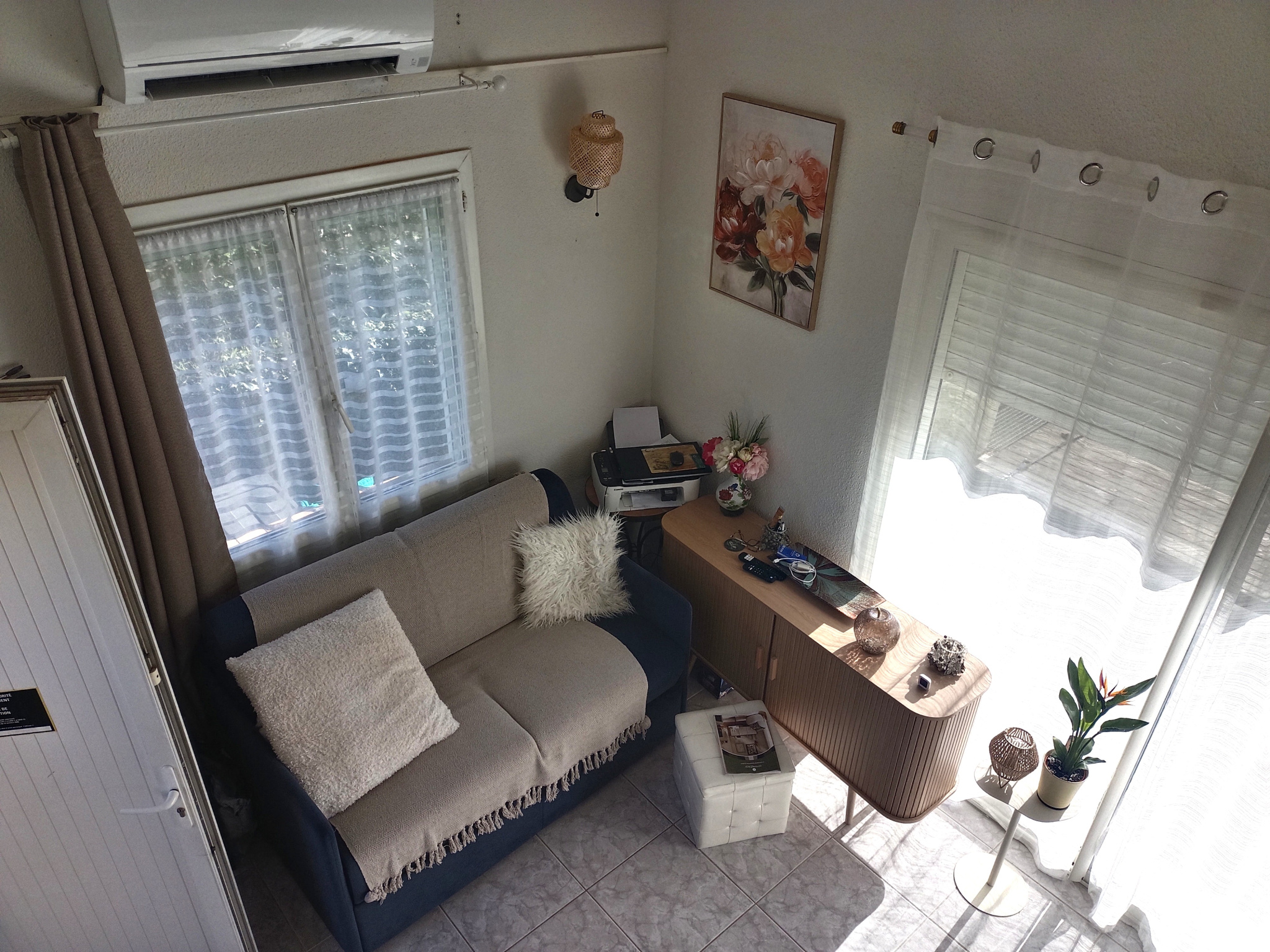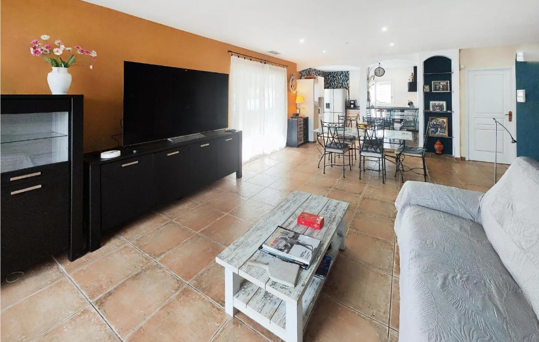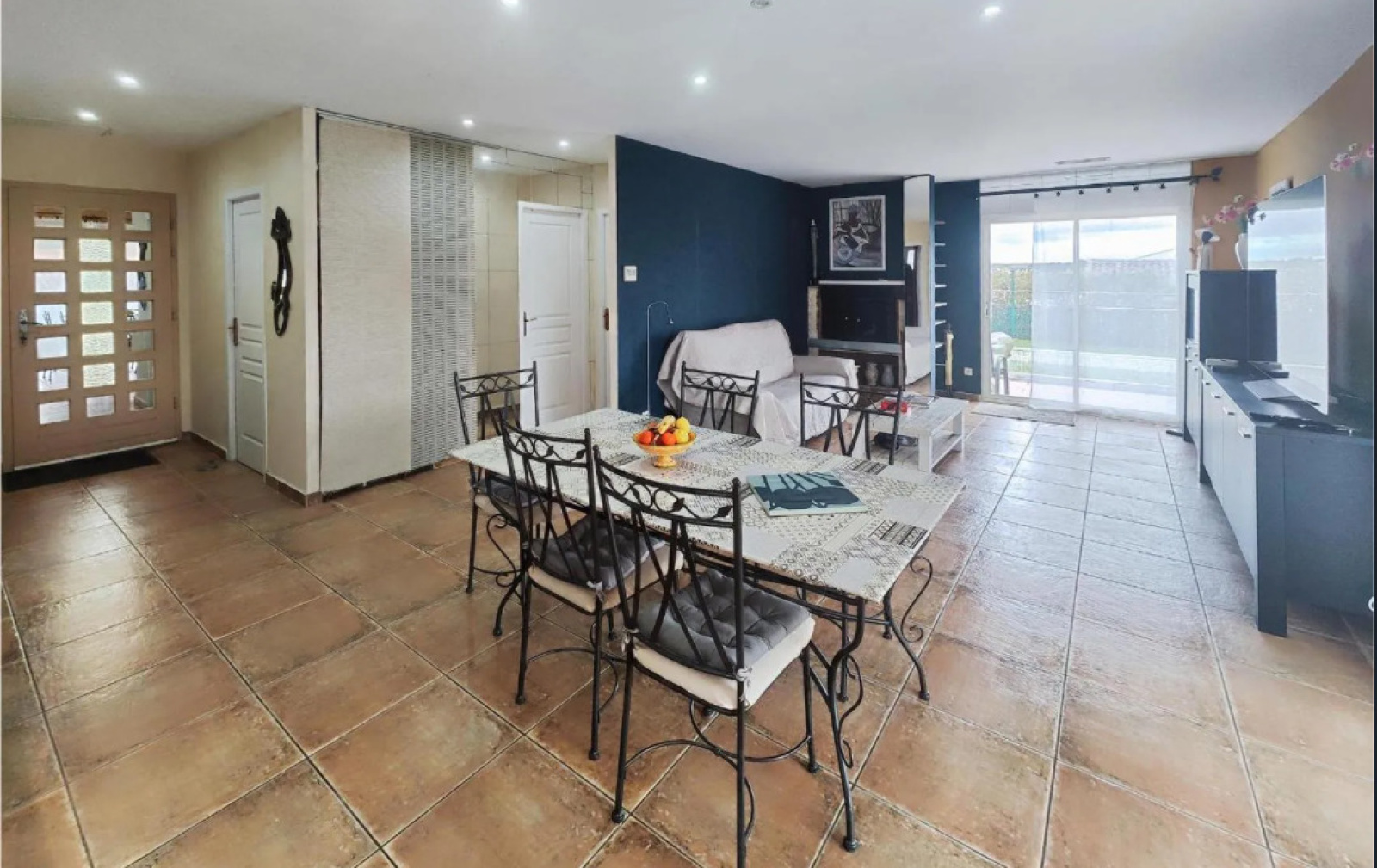 Située dans un quartier résidentiel, maison plain-pied T4 ( année 2005) d'environ 82 m² habitables + un studio indépendant d’environ 18 m2. La maison principale se compose : entrée, séjour / cheminée ouvrant sur une terrasse, cuisine américaine / équipée, 2 chambres, salle d'eau, wc, nombreux placards. clim réversible gainable + radiateur électrique, double vitrage, volets roulants, garage. Le tout sur parcelle clôturée d'environ 650 m² avec piscine 8X4 et forage. Présence de panneaux photovoltaïques. Bon état général. Proximités tous commerces et écoles