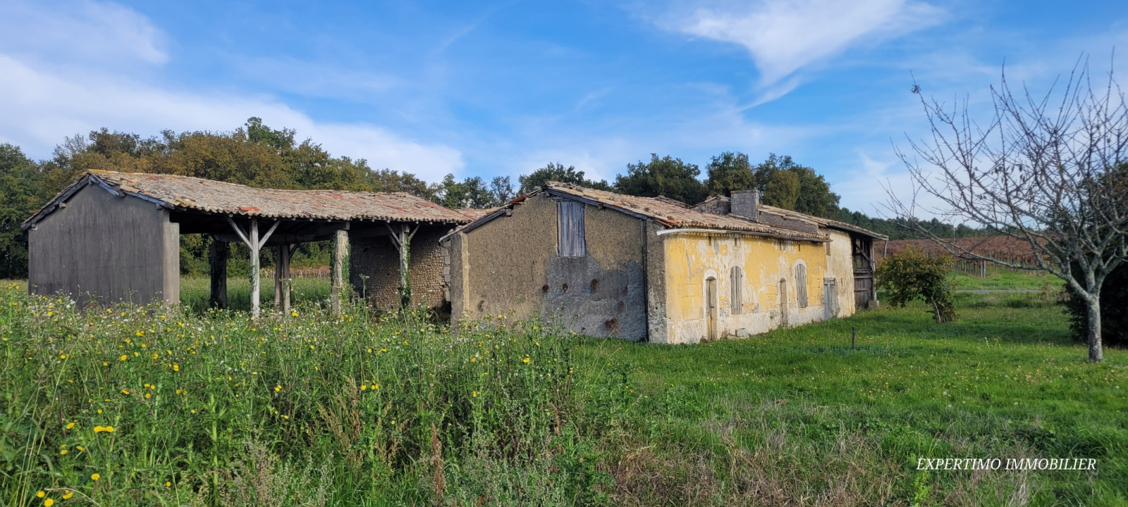 Nichée en pleine campagne à 8 mn de MIRAMBEAU et 15 mn de JONZAC, Ludovic TROUWAERT du RESEAU EXPERTIMO vous propose de découvrir cette propriété. Elle dispose d'une maison d'habitation des années 70 sur 2 niveaux, offrant 2 chambres avec possibilité d'une troisième, une cuisine simple séparée, un salon séjour, une salle d'eau et wc. Au sous-sol, une buanderie, un local chaufferie, une pièce (ancienne chambre) et un vaste garage.Â