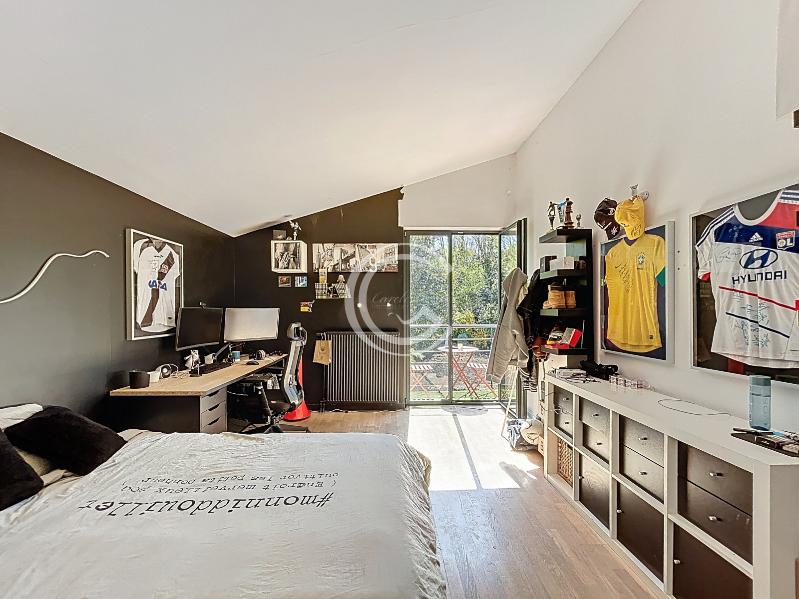 > Au 1ER ETAGE, 4 chambres spacieuses s’articulant ainsi : une « master bedroom » de plus de 30m² avec un grand dressing et sa salle d’eau / WC attenante, ouvrant sur un balcon sud, 2 chambres de 17m², dont une ouvrant sur le balcon sud, se partageant une salle de bain / WC, une chambre de 15m² et sa salle d’eau. Des WC séparés et un vide sur l’entrée (7m² pour bureau, bibliothèque, jeux...), et un coin lecture.