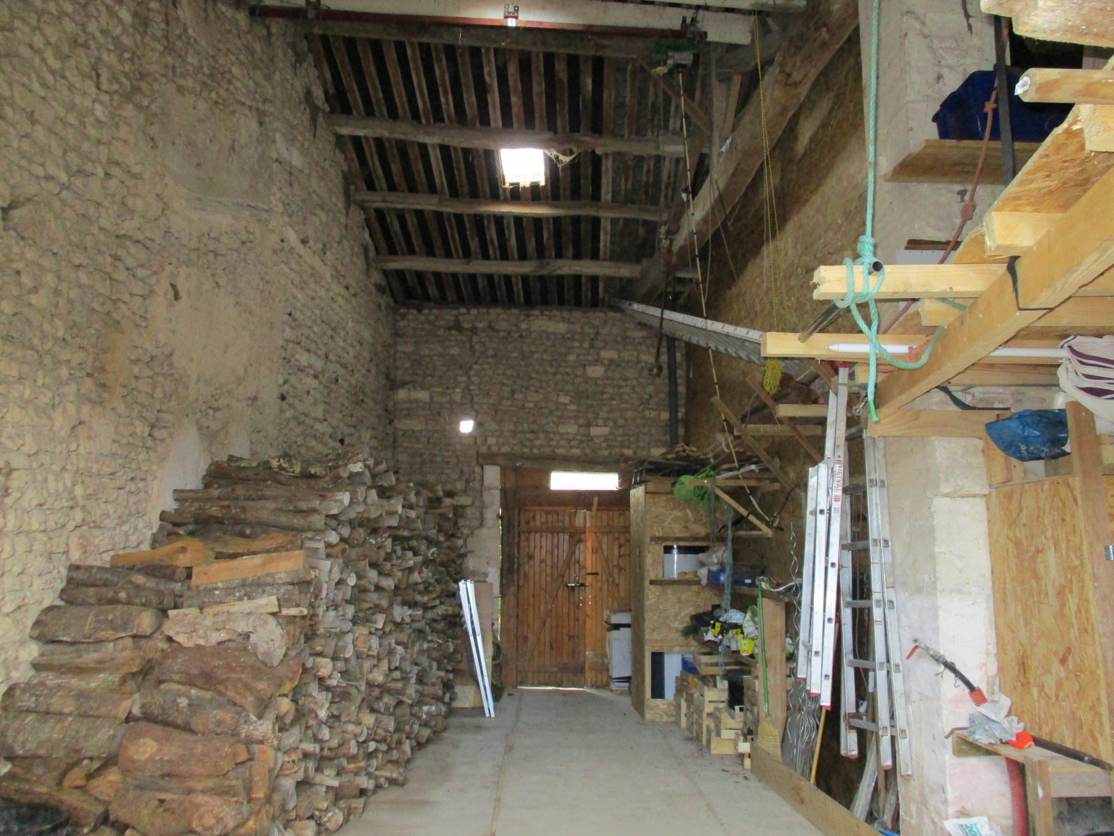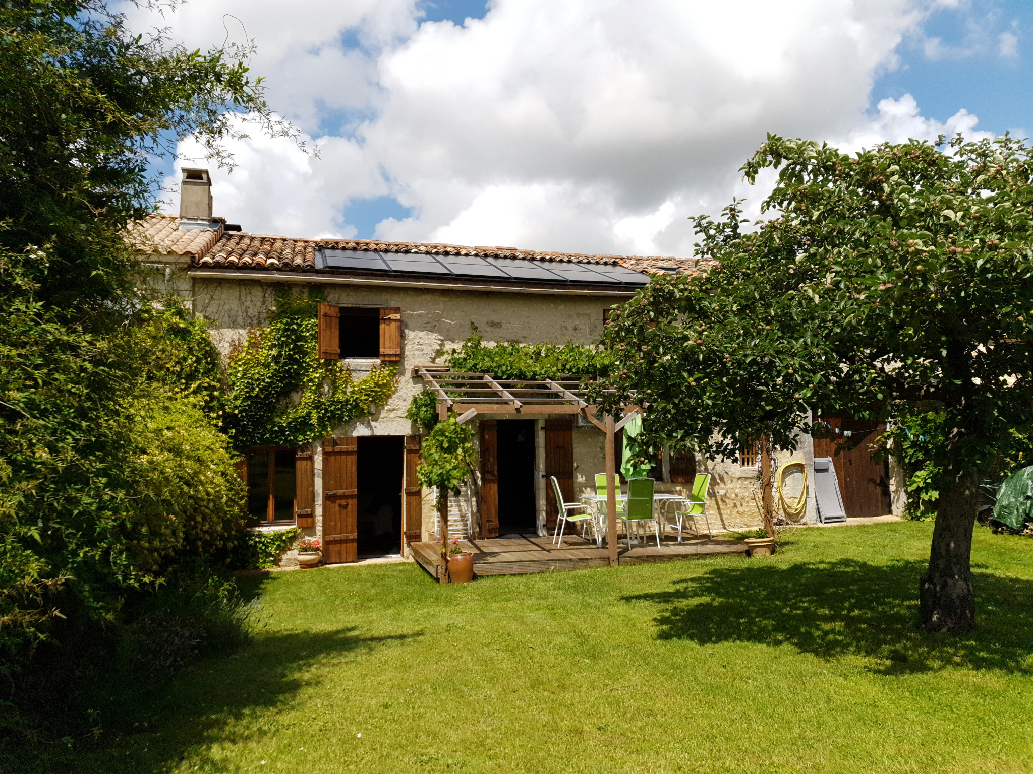 ancien chais avec l'installation aérovoltaïque pour le chauffe eau thermodynamique sert également de garage pour les véhicules