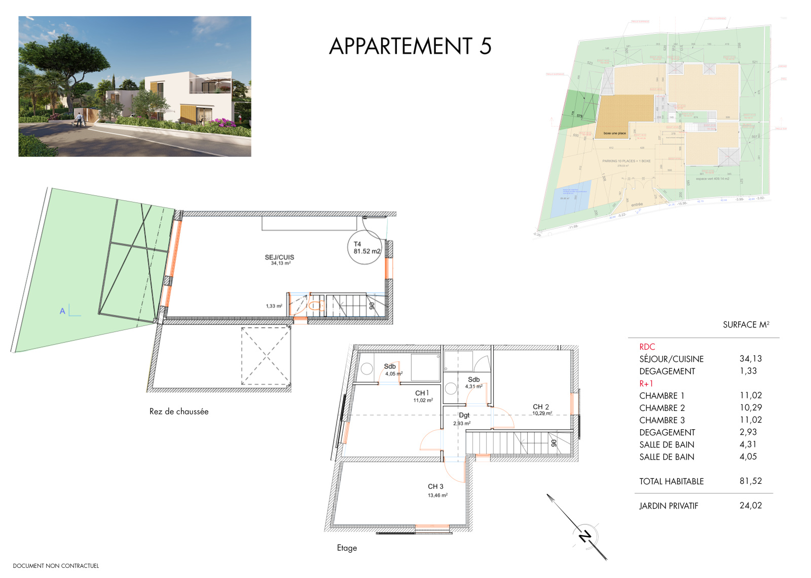 Appartement duplex T4 de 81.52 m² se composant d'un séjour / cuisine au rez de chaussée et un toilette . A l'étage 1 suite parentale , 2 chambres , une salle d'eau avec toilettes - Exposition NORD / SUD · avec jardin d'environ 24 m²