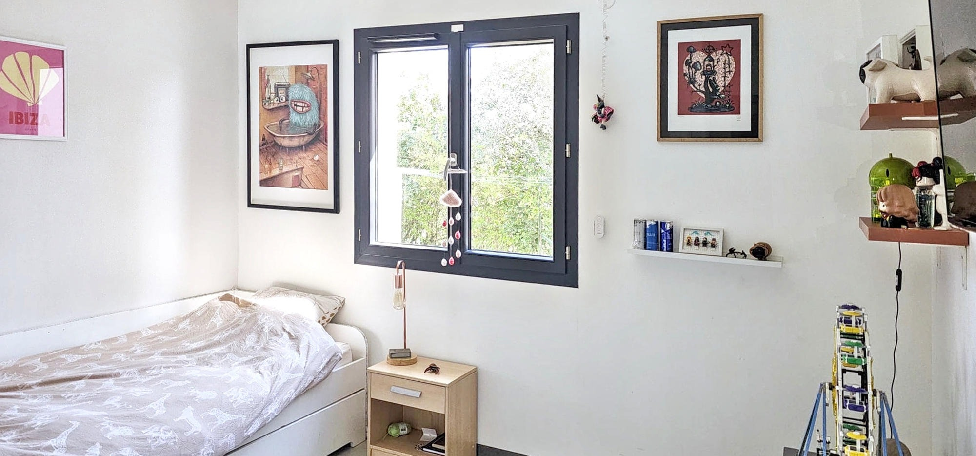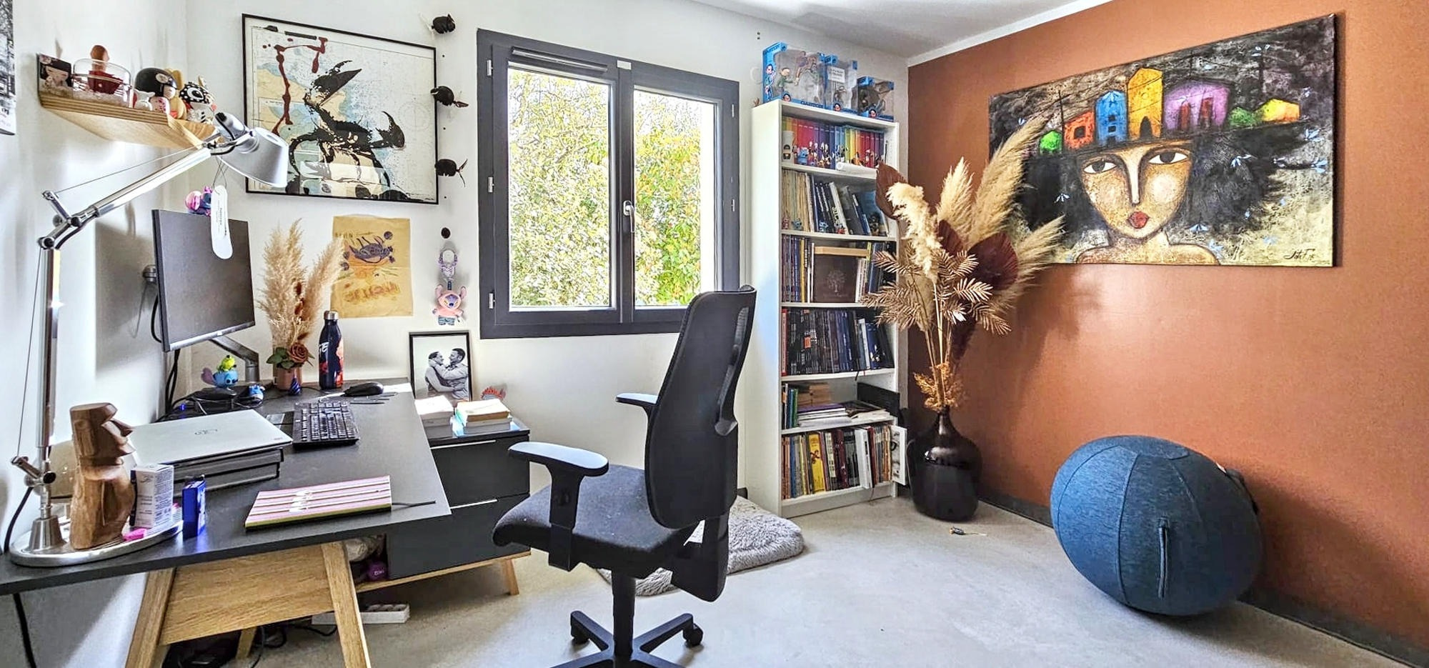 L’espace nuit comprend trois chambres confortables et une salle de bains indépendante, dont une suite parentale avec salle d’eau privative. Une seconde suite avec salle d’eau, pouvant être totalement indépendante, offre un espace idéal pour recevoir, aménager un bureau ou créer un espace dédié au télétravail.