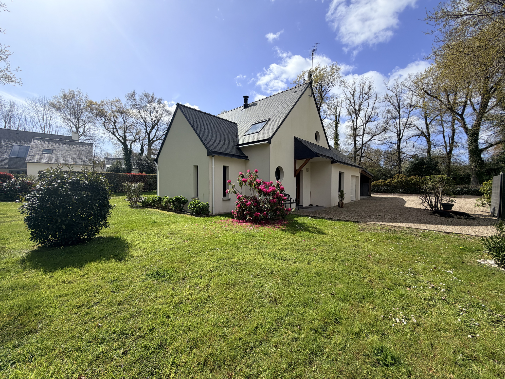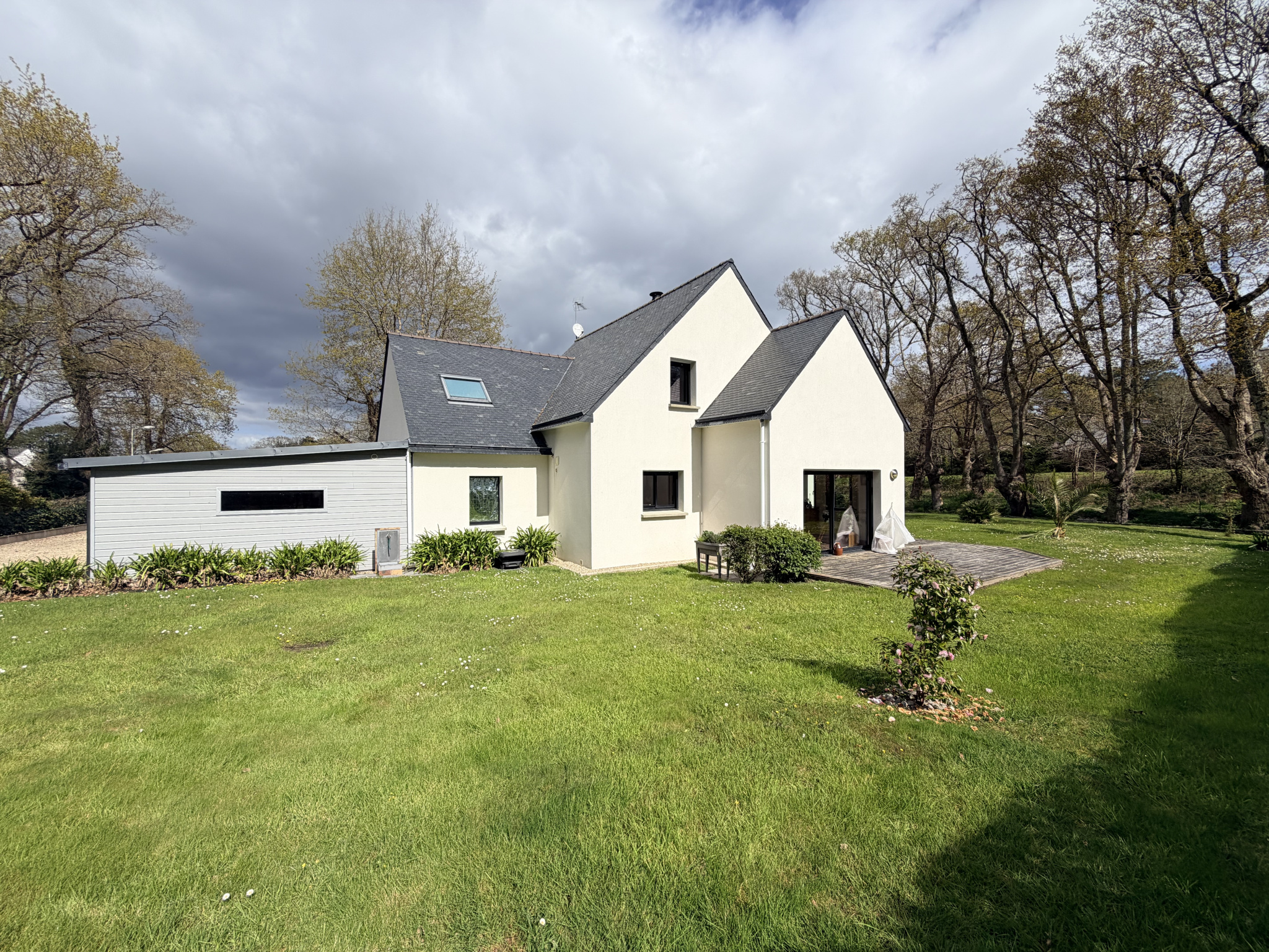 IMPLANTÉE SUR UN TERRAIN CLOS et CONSTRUCTIBLE 1252 m2 , je vous propose. cette maison située à La Trinité sur Mer dans un environnement boisé. Découvrez cette maison contemporaine de bonne facture aux lignes originales édifée en 2008,