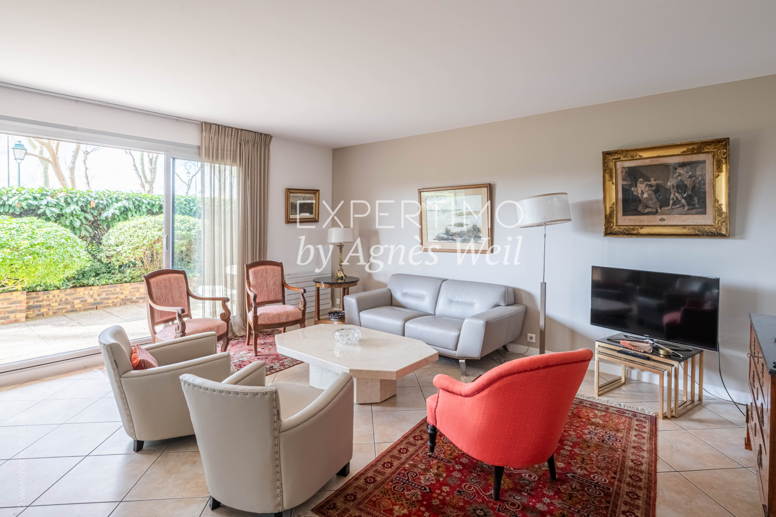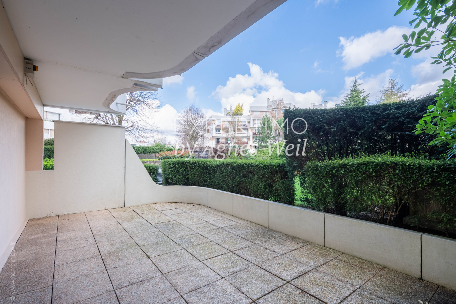 EXCLUSIVITÉ - SAINT-CLOUD - HIPPODROME - Très bel appartement familial de 4 pièces avec 2 grandes terrasses de plain-pied, d'une surface de 100 m2 environ qui vous séduira par ses nombreux atouts. Il est situé dans la verdure au rez-de-chaussée d'une copropriété sympathique, bien entretenue et tranquille de 6 étages. Traversant, fonctionnel et parfaitement distribué avec sa partie jour et sa partie nuit, l'appartement bénéficie de larges baies vitrées et de vues dégagées sur jardins. Il comprend une entrée qui dessert une spacieuse pièce à vivre de 45 m2 avec salon et salle à manger donnant accès à une 1ère terrasse de 38 m2. Son exposition sud-ouest vous permettra de bénéficier du soleil une grande partie de la journée. Vous pourrez aisément y recevoir vos amis, déjeuner, dîner, lire ou vous détendre sur un transat. Un dégagement vous conduit à la cuisine séparée, aménagée et équipée. Vous accéderez ensuite à l'espace nuit qui comprend 2 chambres, une salle de bain, une salle de douche, un dressing et 2 WCs dont un indépendant. Les chambres donnent sur une 2ème terrasse de 27 m2, totalement au calme où l'on entend les petits oiseaux. Rangements intégrés. Double vitrage. Volets roulants électriques. Compteurs d'eau individuels. Electricité aux normes. Porte blindée. Copropriété sécurisée. Digicode. Visiophone. Gardien. Deux emplacements de parking en sous-sol et une vaste cave de 13 m2 environ accessibles directement par ascenseur complètent ce bien. Local vélos. Ravalement résidence fait en 2016. Réfection entrée immeuble récente. Excellente sectorisation scolaire (public : collège Emile Verharen, lycée Alexandre Dumas ; privé : école allemande, école américaine, centre Madeleine Danielou, La Salle Passy Buzenval). Proche commerces et marché : 10' à pied. Transports faciles : nombreux bus 160, 244, 360 ; gare Saint-Cloud Val d'Or - ligne L à 10' à pied pour La Défense en 5' et Paris St Lazare en 17'. Proximité immédiate tennis municipal et gymnase. Proche Paris Country Club. Bienvenue pour les visites !