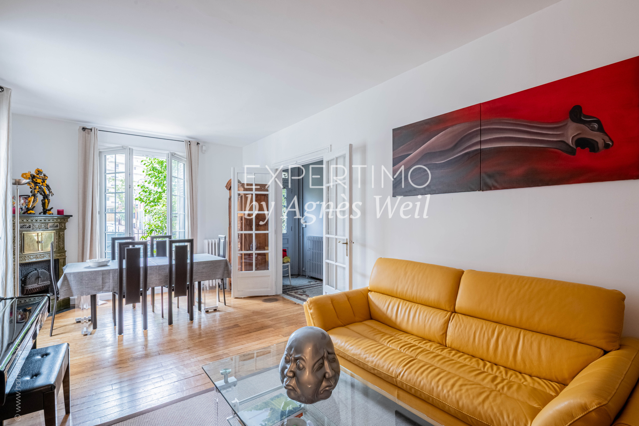 EXCLUSIVITÉ - SAINT-CLOUD - TRIANGLE D'OR - PROCHE MONTRETOUT. Cette belle maison de ville meulière familiale avec cachet et moulures de 2 étages, exposée ouest, avec sous-sol total vous séduira par ses nombreux atouts. Bénéficiant d'un emplacement premium, au pied des commerces, du Monoprix, du marché couvert des Avelines et proche des écoles internationales, mais totalement au calme dans une petite rue, elle offre de multiples possibilités d'agencement avec son potentiel de 4 ou 5 chambres. Sa surface Carrez est de 117 m2, sa surface habitable est de 140 m2 et sa surface au sol est de 173 m2. Passé le patio arboré, vous entrerez au rez-de-chaussée qui comprend une entrée avec une jolie mosaïque au sol, un salon/salle à manger avec sa superbe cheminée prussienne et une cuisine aménagée et équipée. Vous emprunterez ensuite l'escalier qui vous mènera au palier du 1er étage qui dessert une suite parentale avec sa magnifique et spacieuse salle de bains balnéo Porcelanosa, sa douche à l'italienne et WC suspendu, un dressing et une pièce supplémentaire qui peut-être agencée selon vos envies, vos goûts et vos besoins. Vous monterez ensuite un autre escalier pour arriver au 2ème étage qui vous offre dans sa configuration actuelle une chambre, une salle de douche avec WC et un très grand bureau qui peut être transformé très facilement en 2 chambres distinctes. En descendant au-sous-sol, vous trouverez cave à vins, chaufferie et 2 pièces de rangements qui peuvent aussi être une salle de jeux qui ravira les enfants. Double vitrage. Matériaux haut de gamme. Climatisation 1er et 2ème étage. Fibre. Alarme. Visiophone. Electricité aux normes. Toiture et façade en bon état. Ballon eau 150 L récent. Possibilité de mettre une pompe à chaleur très facilement (fourniture devis sur demande) et de réhausser la pente du toit (cf permis obtenu). Proximité crèches, écoles publiques (sectorisation collège Emile Verhaeren et lycée Alexandre Dumas) et privées (primaire et collège Saint-Joseph ; école Montessori), commerces et transports (nombreux bus : 15, 40, 160, 360, 459, 460, 467, 471) ; gare de Saint-Cloud à 8' à pied - ligne L (20' pour Paris Saint-Lazare) et ligne U (9' pour la Défense). Proximité A13, parc de Saint-Cloud et Bois de Saint-Cucufa. Bienvenue pour les visites !