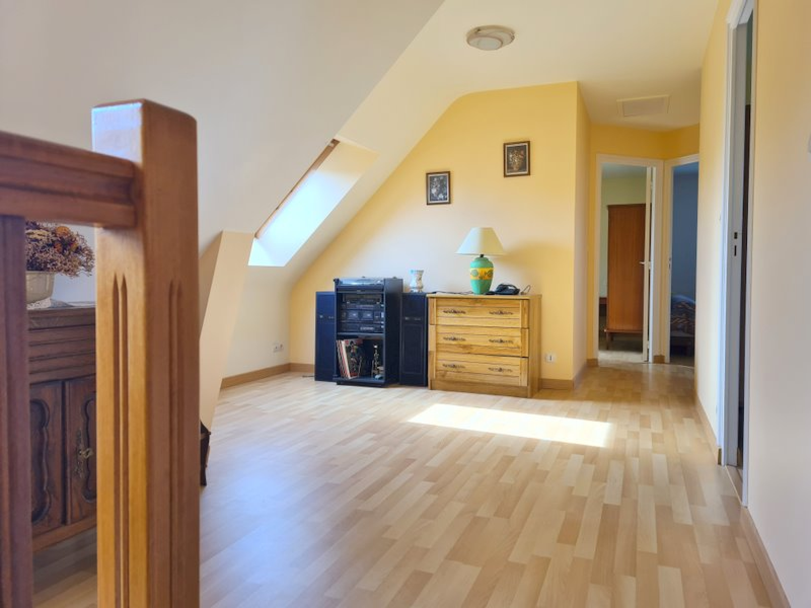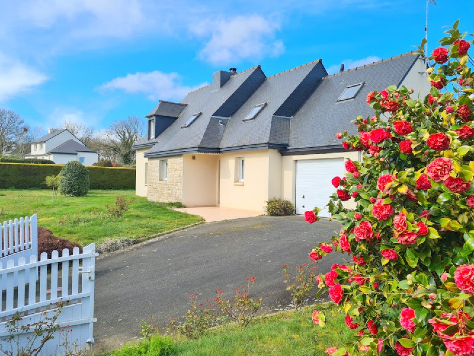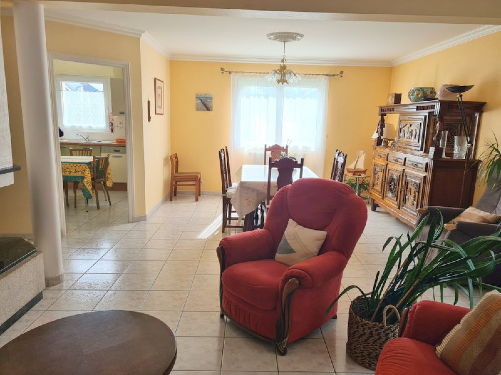 jolie maison de construction traditionnelle de 1997, implanté sur un terrain clos de plus de 1000m2, arboré, avec un portail d'entrée, et une allée et cour goudronnées. Un grand garage/atelier construit en parpaings peut accueillir plusieurs voitures, ou être utilisé comme atelier. L'entrée de la maison se fait par un hall ouvrant sur la cuisine équipée et aménagée, qui elle-même, ouvre sur le salon/salle à manger, avec une cheminée. Depuis la salle à manger, il est possible de petit-déjeuner dans une petite véranda, à l'abris des regards. Du hall d'entrée, on arrive à la chambre avec sa salle d'eau privative. A l'étage, le palier dessert 3 chambres avec une salle de bains et un wc. Le tout est en très bon état général. La porte du garage attenant est automatique. L'assainissement est raccordé au réseau public d'assainissement collectif. Les huisseries sont en double vitrage PVC avec volets, la cheminée complète le système de chauffage. La maison vous accueille, sans aucuns travaux à prévoir dans l'immédiat. La décoration est sobre et faite avec gout. Pour toute information utile, vous pouvez contacter l'agence au 0296795846 ou par mail : tfc-chatelaudren@wanadoo.fr. Et retrouvez nos biens à la vente sur notre site : tfcimmobilier-réseauexpertimo.fr.