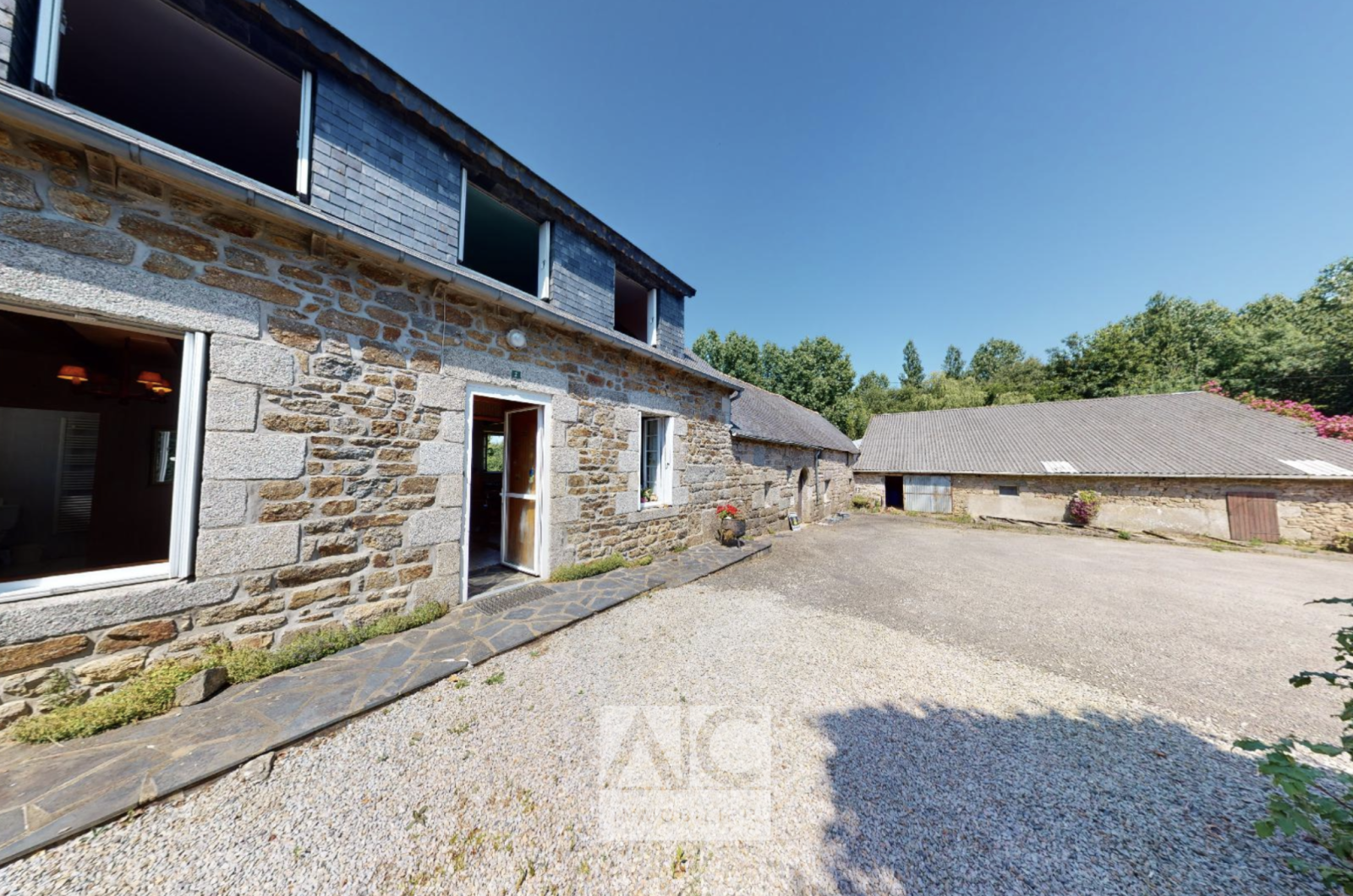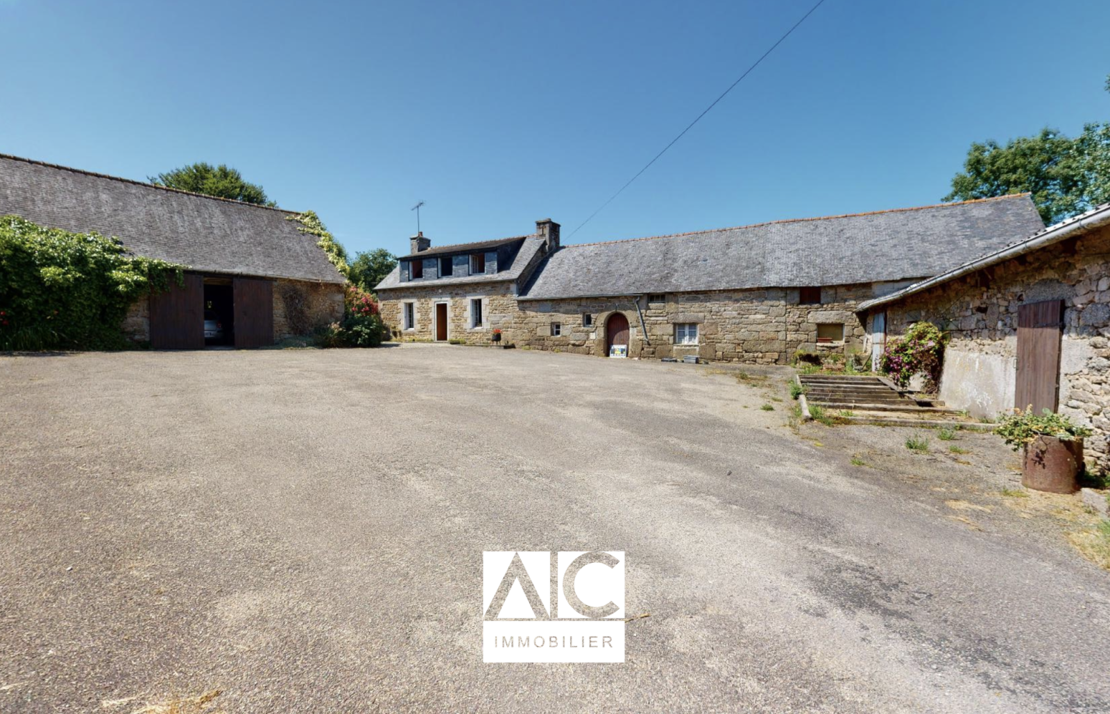 * Étable (pierres couverture Fibrociment) + Écurie (pierres couverture récente ardoises) d’environ 100m2