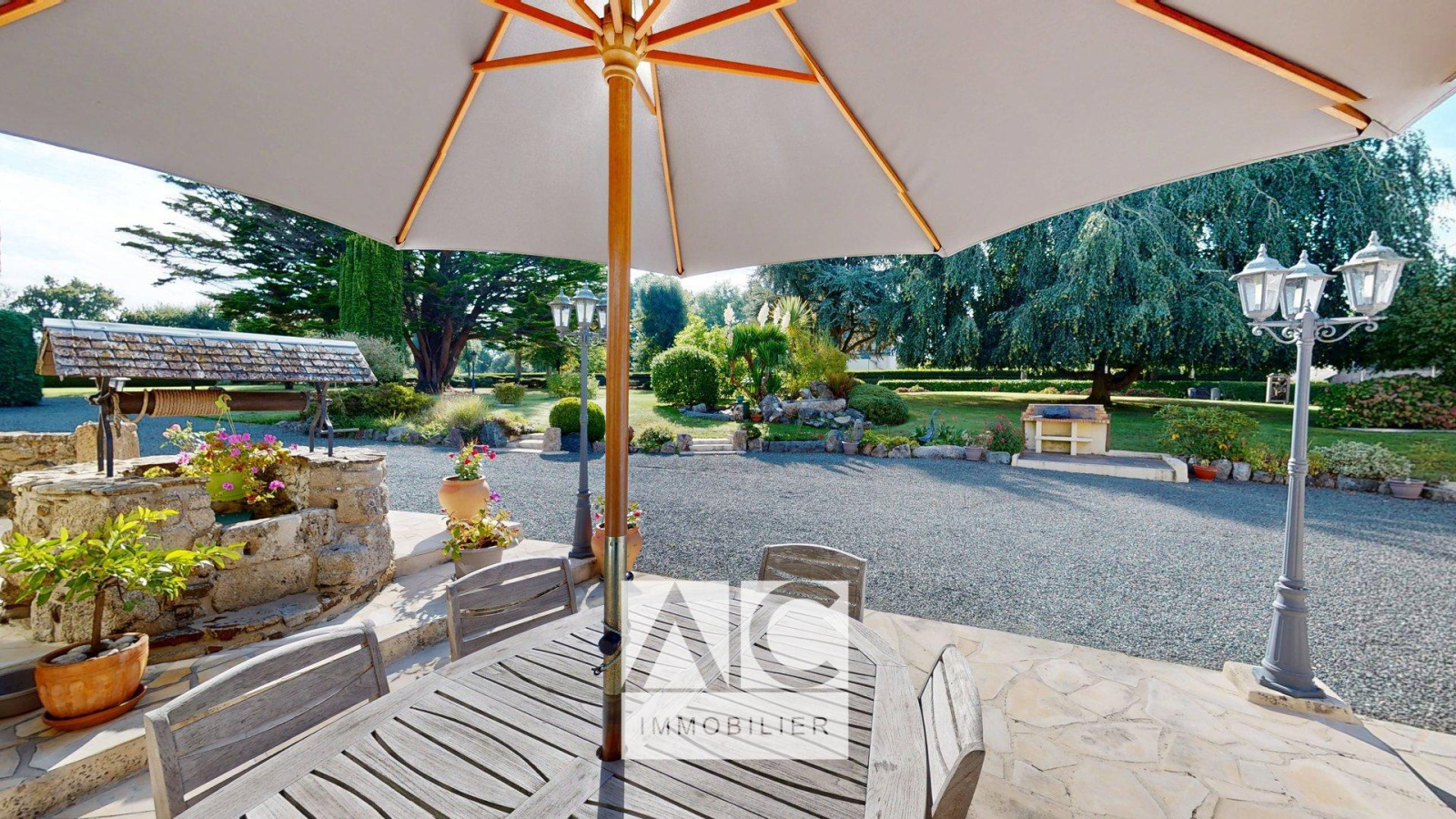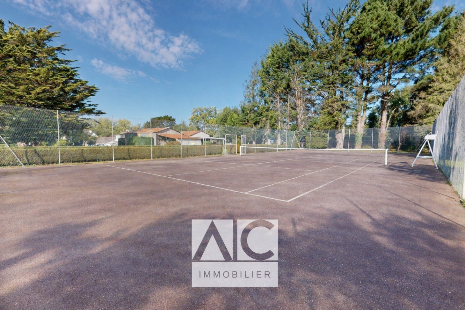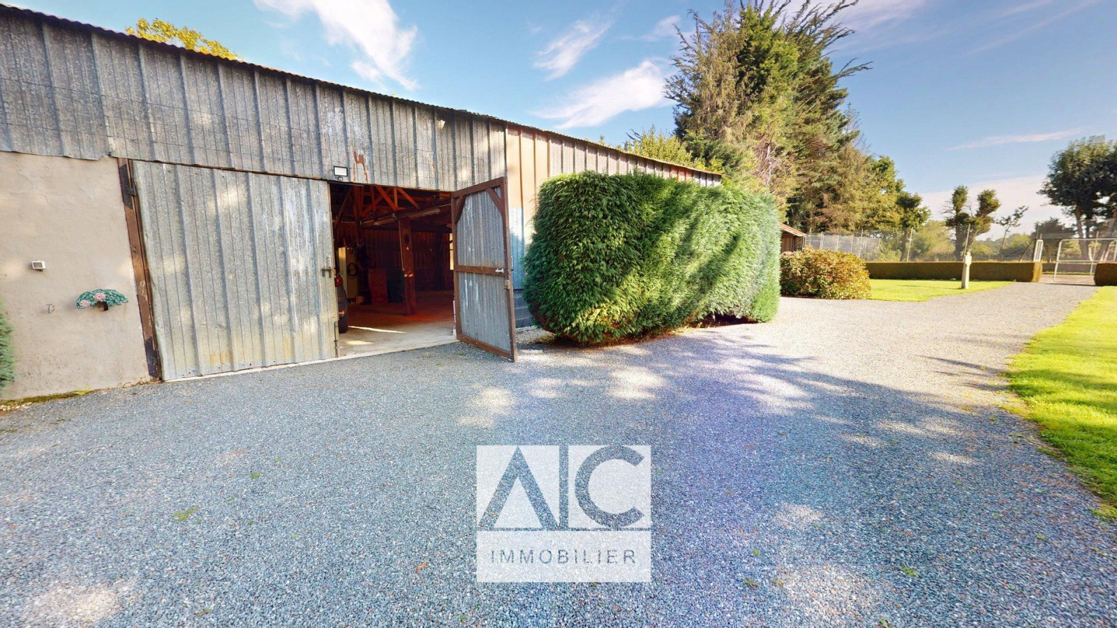 EXTÉRIEUR : Terrain clos et arboré de 6270m2 / Terrasse / Dépendances (cave, box) / Hangar (140m2) / Carport (50m2) / Terrain de tennis / Puits individuel.