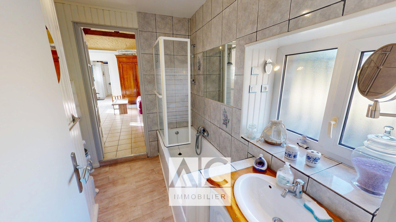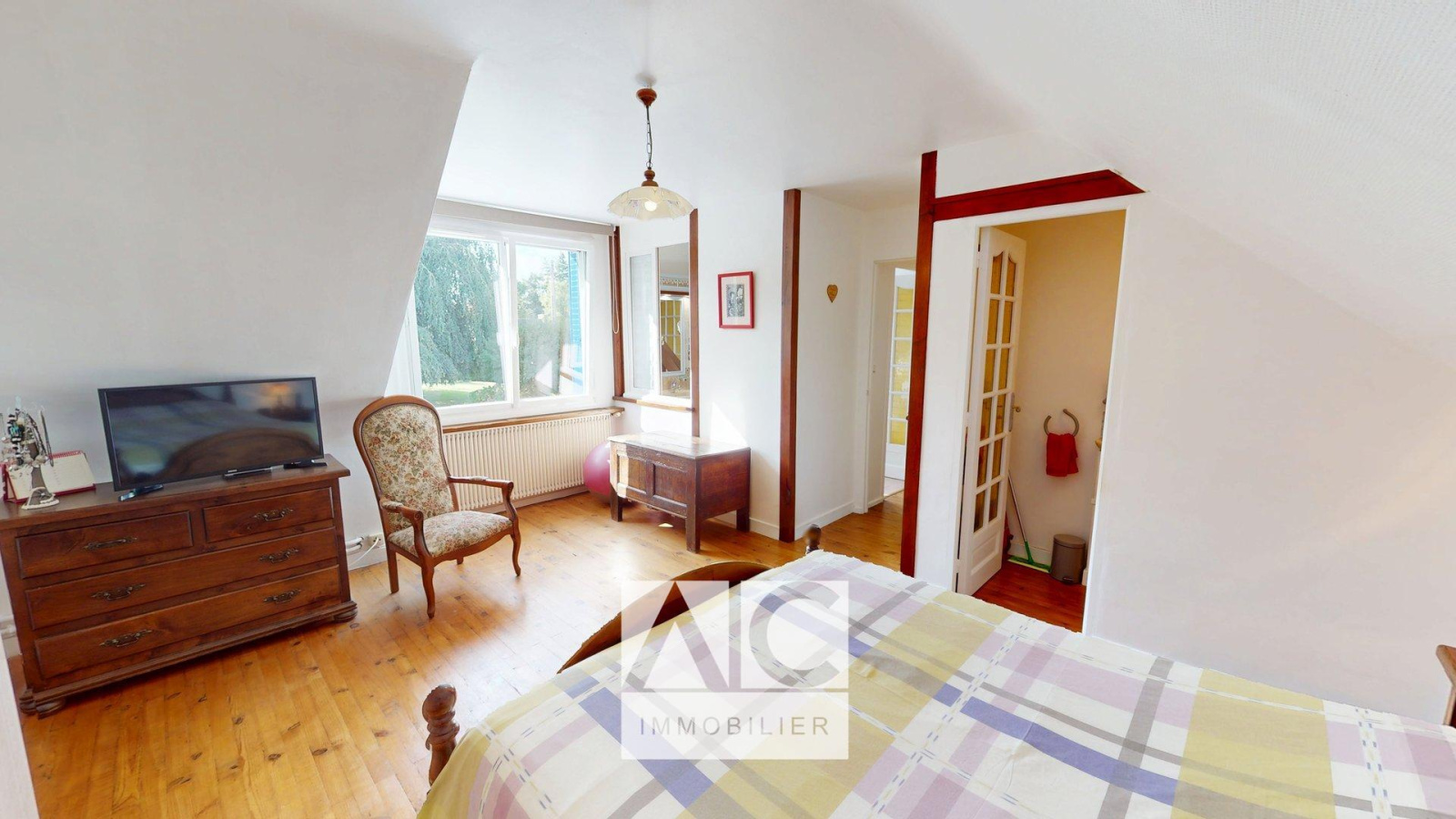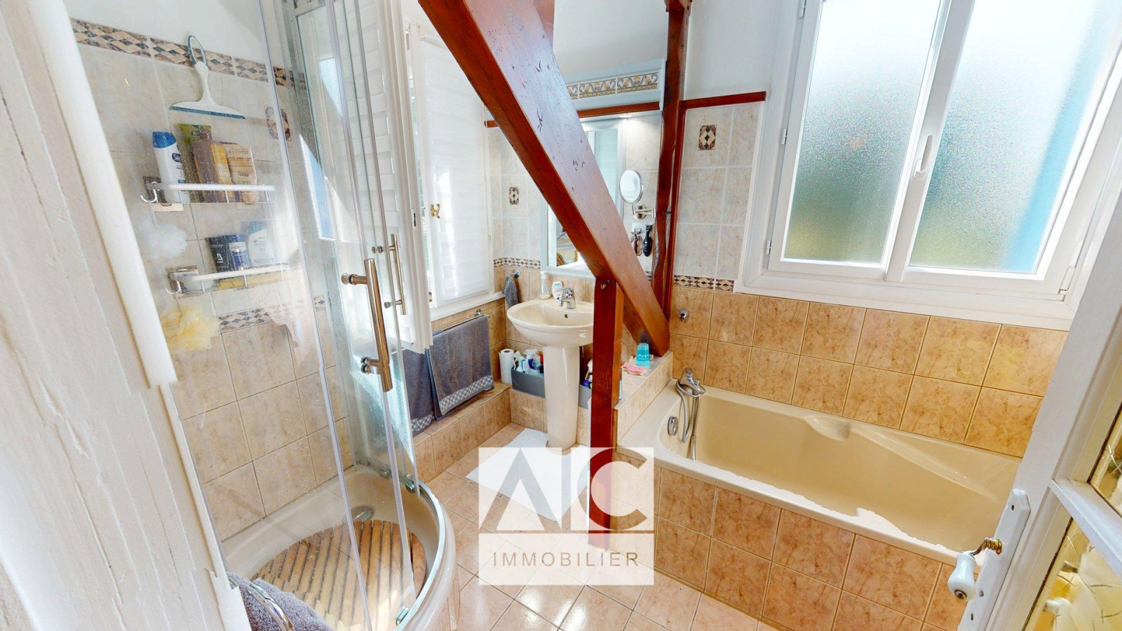 ÉTAGE : Palier / Salle de bains + douche / 3 chambres dont une avec WC.