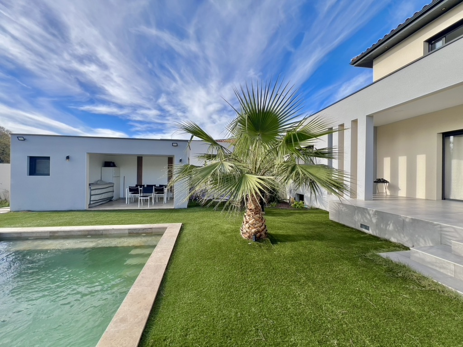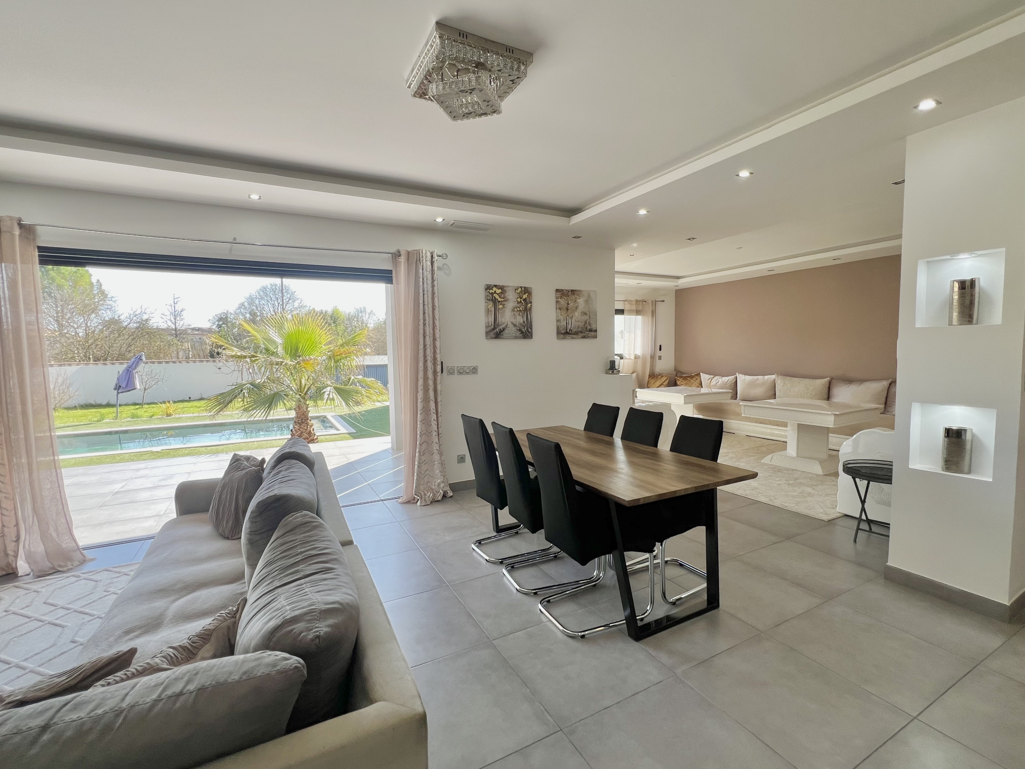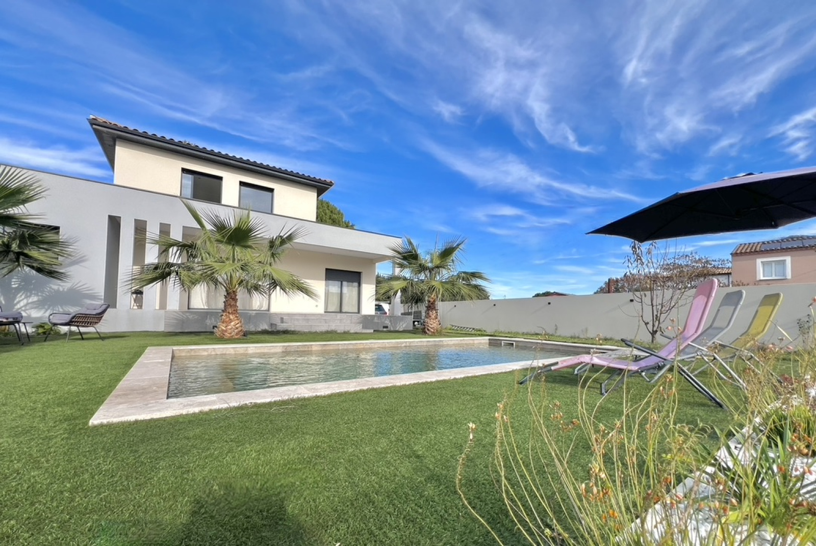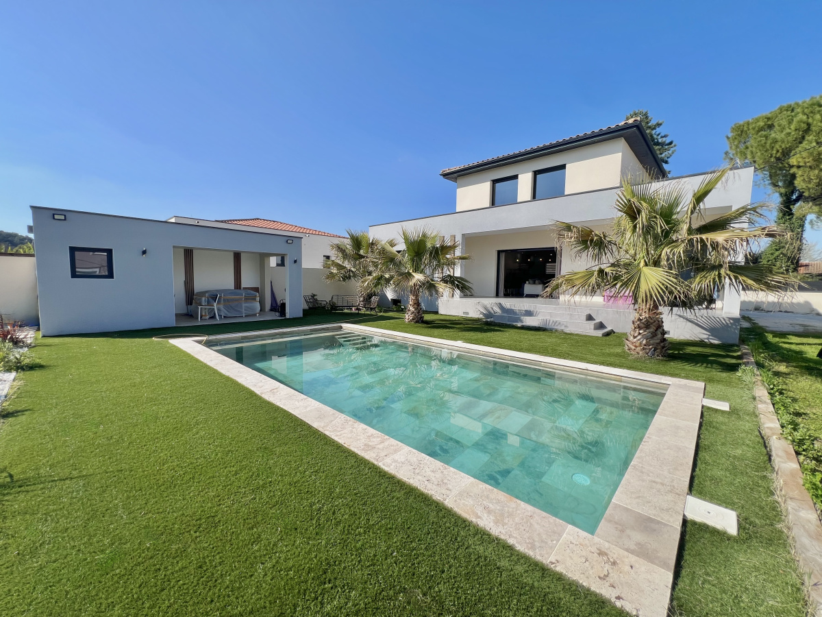 À découvrir en exclusivité, cette superbe villa contemporaine R+1 achevée en 2019, offrant 161 m² habitables sur un terrain de 790 m², avec piscine 8 x 4, pool house, garage et plusieurs stationnements privatifs.