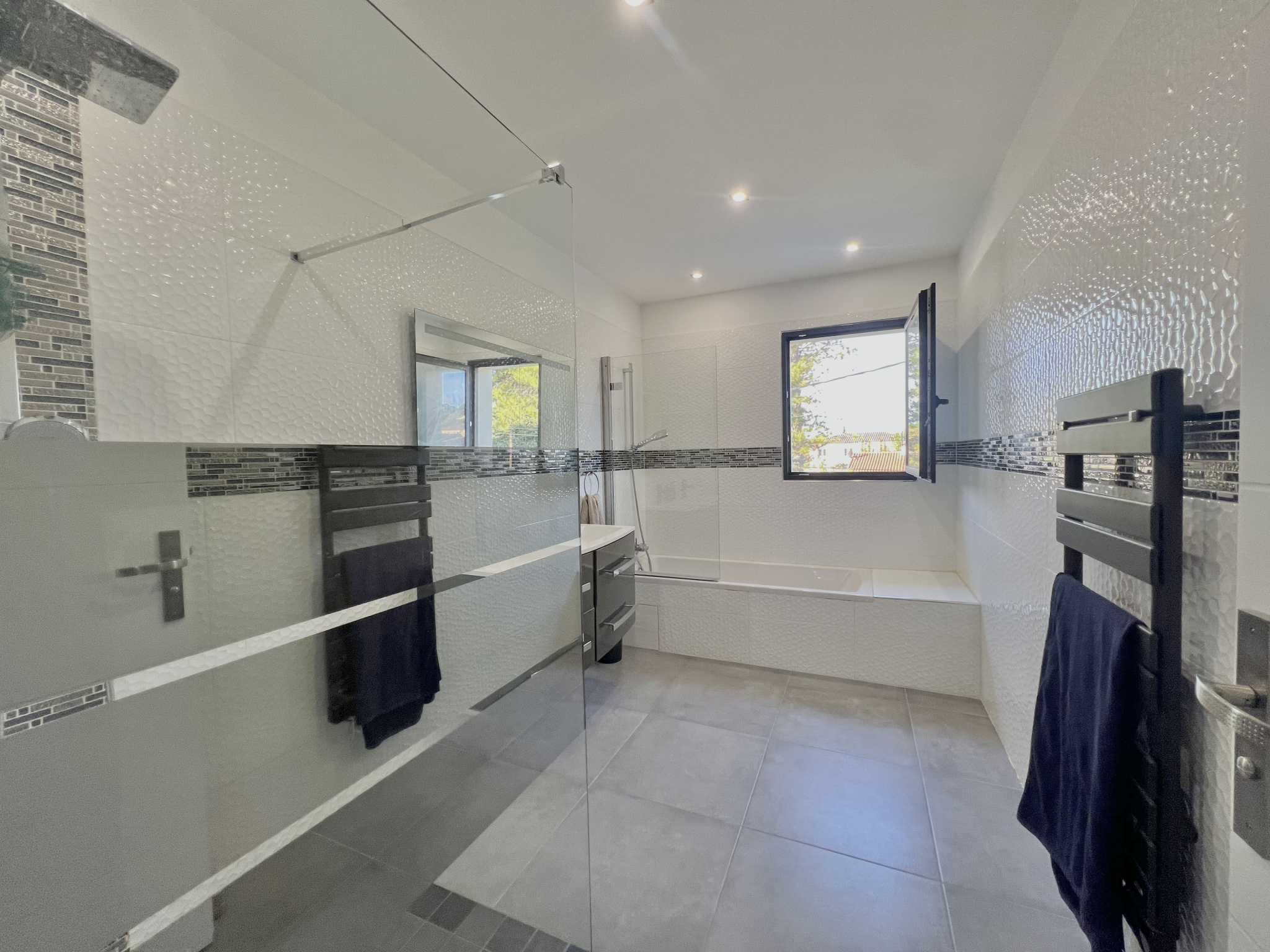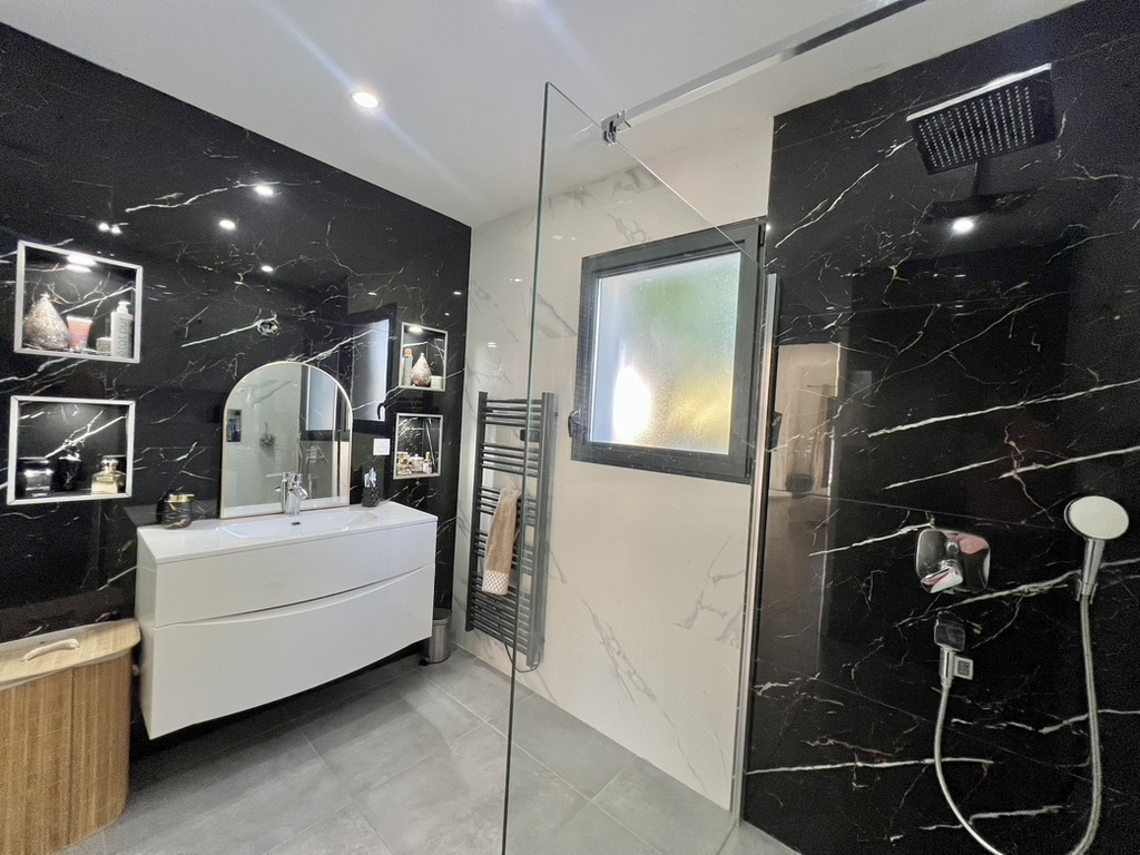 climatisation réversible gainable, chauffe-eau thermodynamique, volets roulants électriques, Baies à galandage, carrelage grand format.