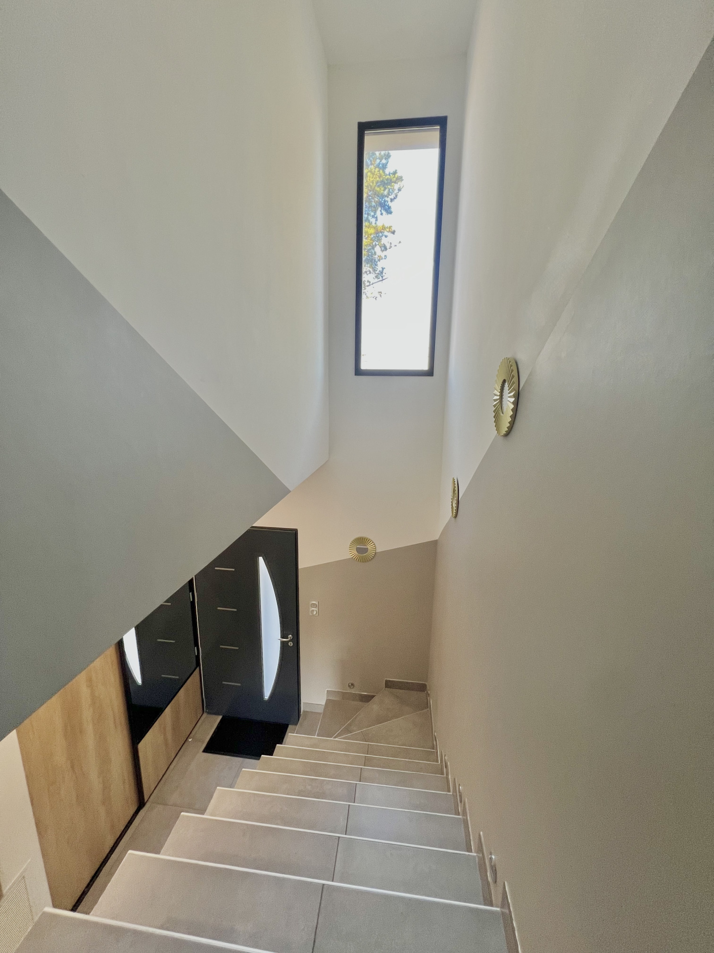 Volumes généreux, circulation fluide, belles hauteurs sous plafond, corniches, décrochements avec lumières indirectes intégrées, grande luminosité : la maison offre un cadre de vie aussi élégant que confortable.